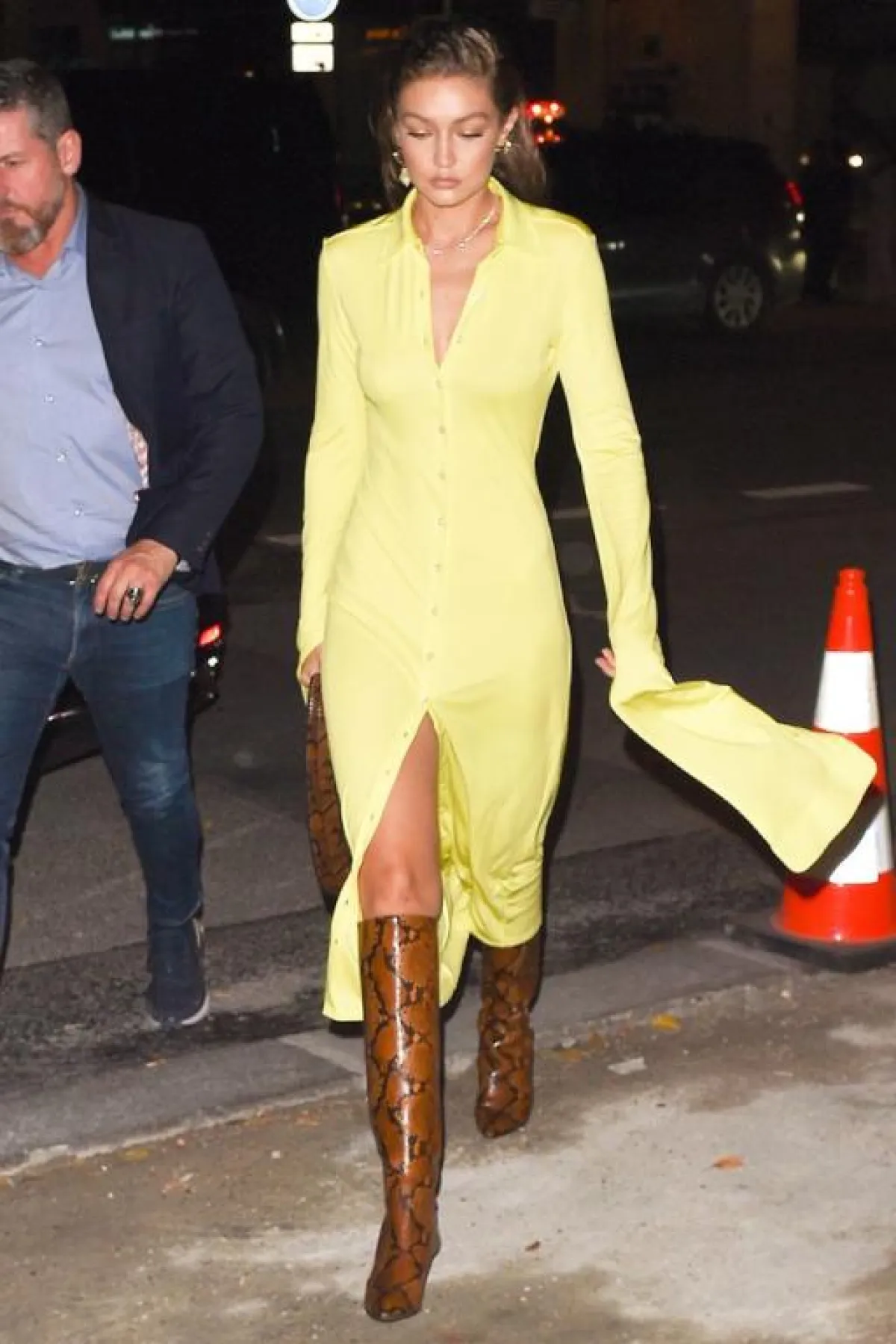 إذا كنتِ بدأتِ بالفعل مهام التسوق لأزياء الخريف، بالطبع شاهدتِ حذاء البوت المستوحى من جلد الثعبان في كل مكان. إنه القطعة الأكثر رواجًا بلا منازع، لذا، اِحصلي على لمسة الحياة البرية بإضافة جلد الثعبان في بوت وحقيبة يد، على غرار عارضة الأزياء جيجي حديد.