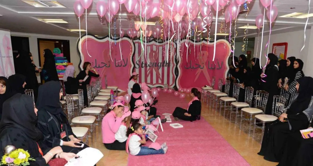 وأضافت: لقد حرصنا في الهيئة على تنظيم العديد من الفعاليات التي تتماشى وأهداف وتطلعات الحملة، بدءاً من الاهتمام بتزيين الممرات الداخلية للهيئة واللجنة النسائية فيها، مع مؤسسة المواصلات العامة وارتداء الموظفات شعار الحملة، مع إطلاق بالونات وردية في الهواء، كما تخللت الحملة تنظيم فعالية (التوعية الصحية) تحت شعار" لآمال عريضة وحياة سعيدة.. افحصي مبكراً" والتي تضمنت عدد من الفعاليات المميزة والمهمة أبرزها توزيع منشورات صحية وعقد محاضرات توعوية من قبل أطباء مختصين الذين ألقوا الضوء على أعراض المرض وعلاجه وطرق الحد من انتشاره في مراحل مبكرة، إلى جانب إعداد مكتبة (الكتاب الوردي) والتي تضمنت كتب صحية توعوية وتثقيفية للمرض، وتوزيع قسائم على الموظفات لإجراء اختبارات سريرية للكشف مجاناً عن المرض على يد ممرضات مُدربات وقادرات على تقديم الإرشادات السليمة بشأن إجراء الاختبارات الذاتية.
