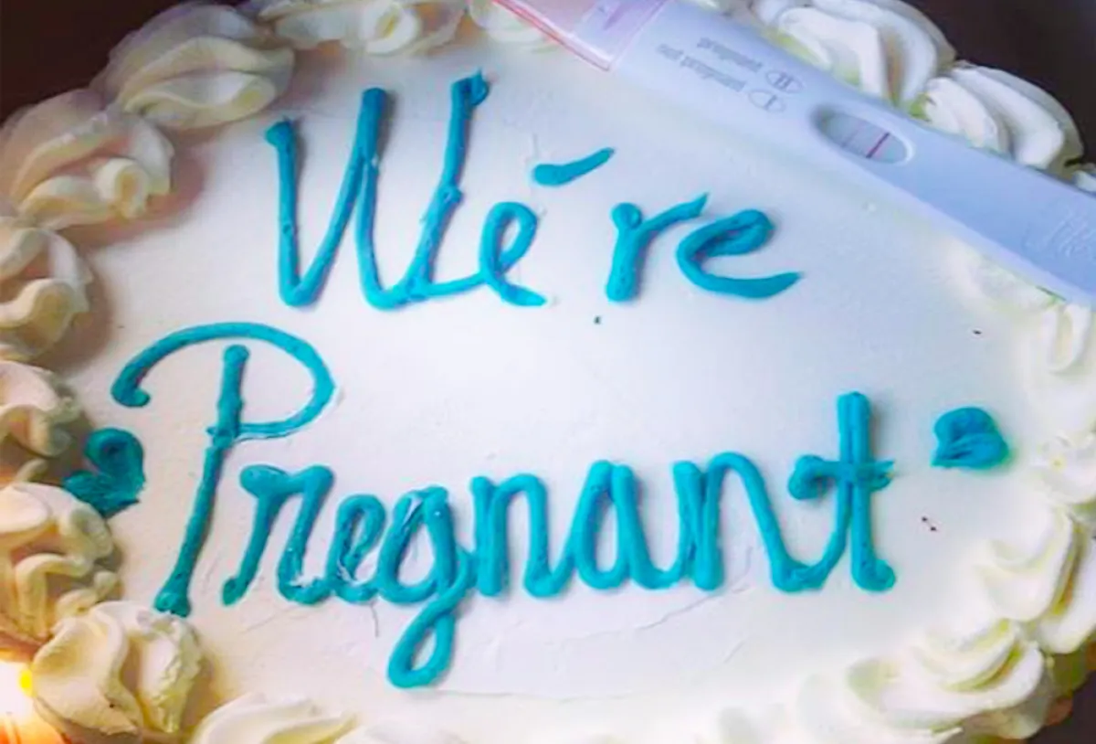 أرادت سيدة أن تُفاجئ زوجها بخبر حملها، فقامت بصنع كعكة وتزيينها بالكريمة، وكتبت عليها أنها حامل، لكنها وضعت لمسة نهائية للكعكة، فقامت بوضع شريط اختبار الحمل فوقها