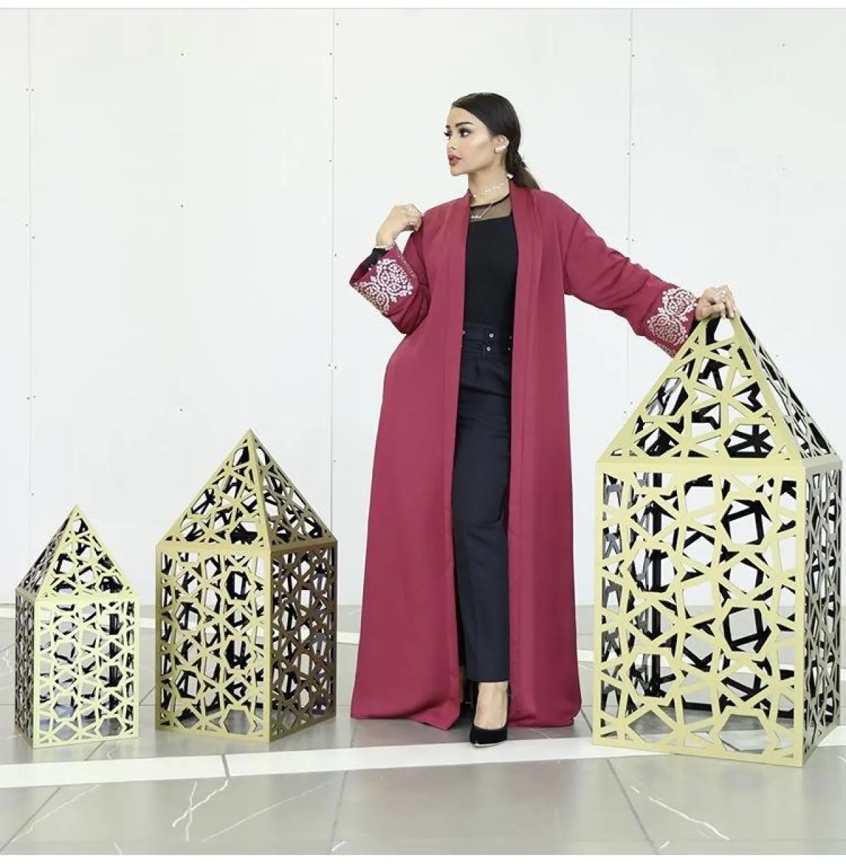 عبايه مفتوحة ملونة بأسلوب عهود العنزي