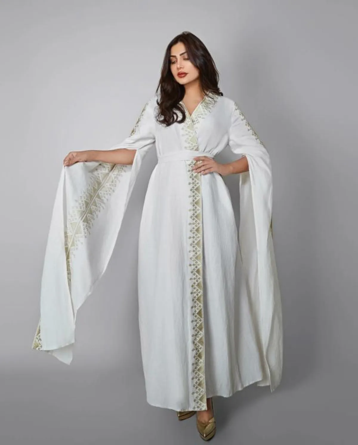 تفضل النجمات من وقت لآخر اللجوء إلى القفاطين والجلابيات التي تعكس هويتهن الشرقية وتضمن لهن إطلالات فخمة تجمل القامة.