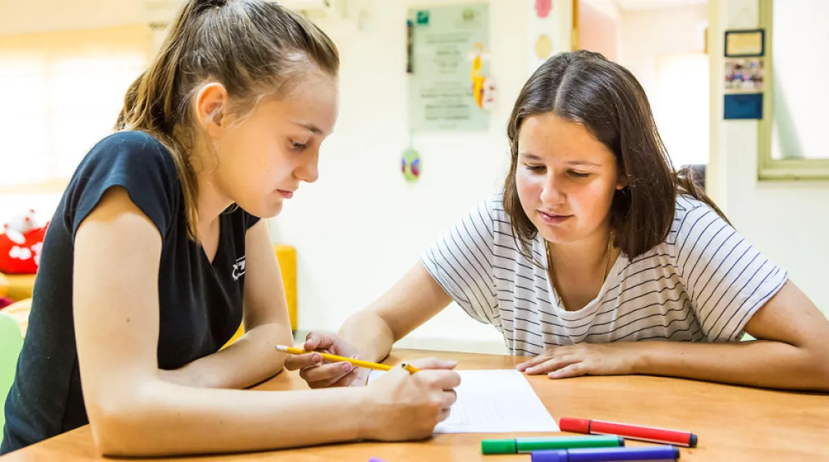 مراهقتان تذاكران معاً