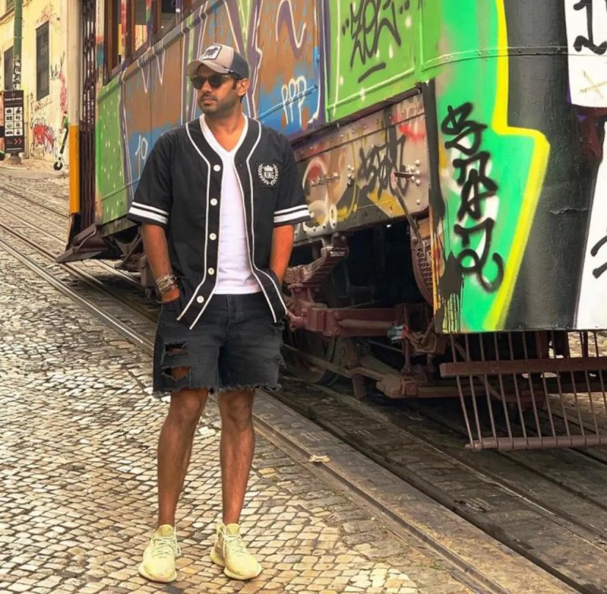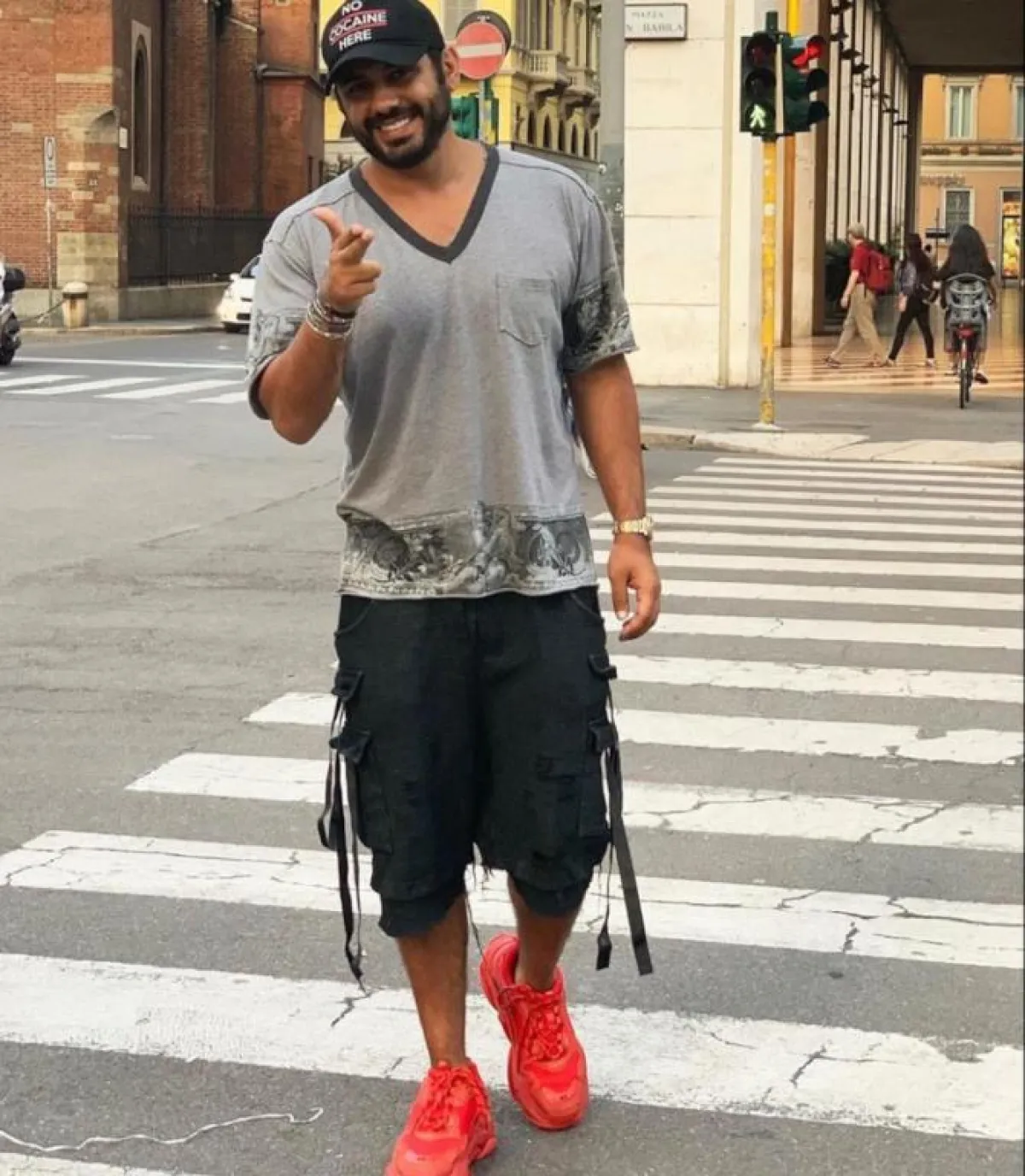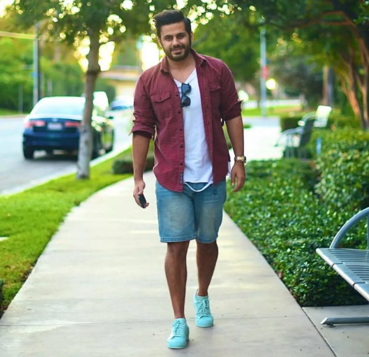 وينسق مع إطلالاته أحذية رياضية باللون الأبيض أو الأسود والسماوي، أو الأحذية الرسمية البنية، كما يختار الأحذية الرياضية باللون الأحمر أو الأصفر أو الأزرق لكسر اللون، وليكمل أناقة إطلالاته ينتقي الساعات الذهبية المختلفة أو الحمراء، والأساور الرجالية بأشكالها المميزة، كما يتزين بالنظارات البنية والسوداء والحمراء بإطار أسود، ويتجمل بالقبعة القش أو الكاب الرمادي المزين بأسود أو القبعة السوداء.