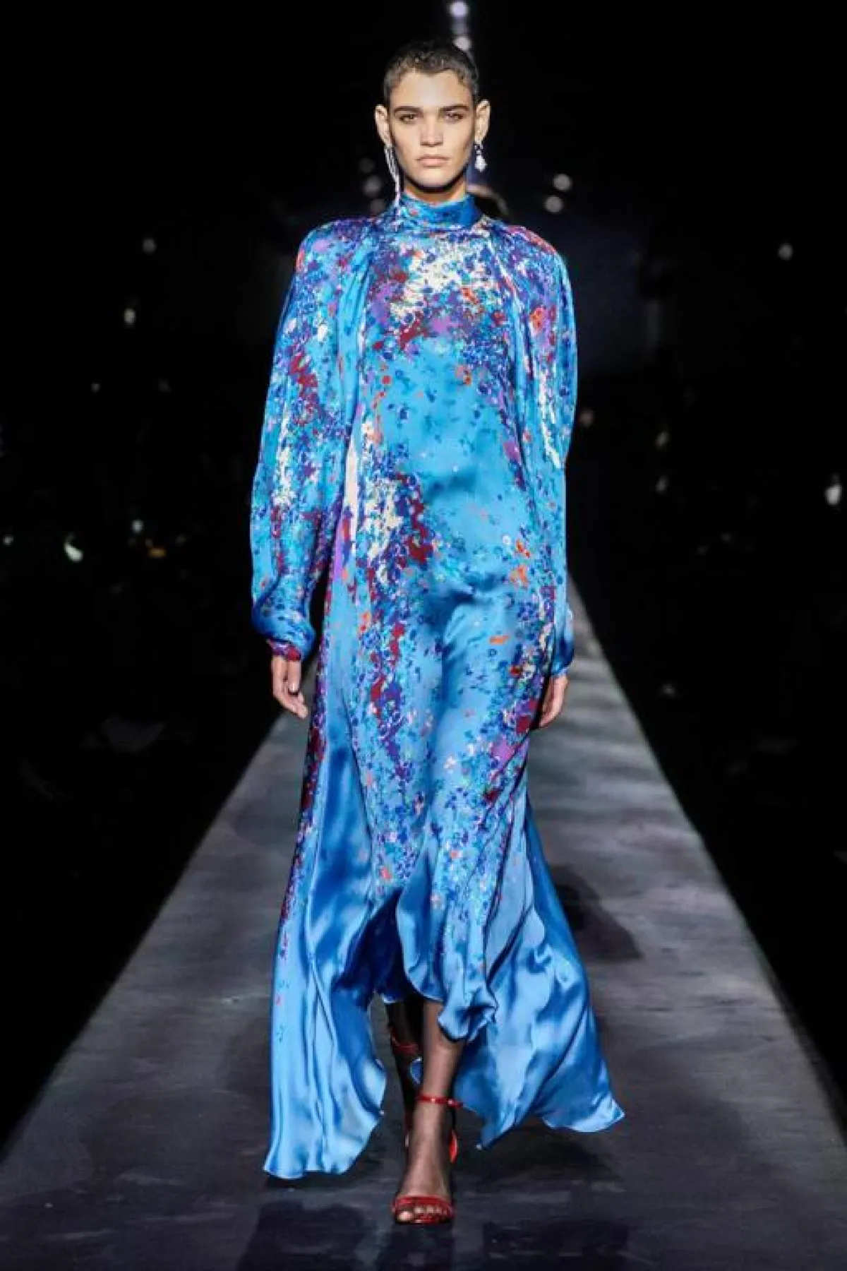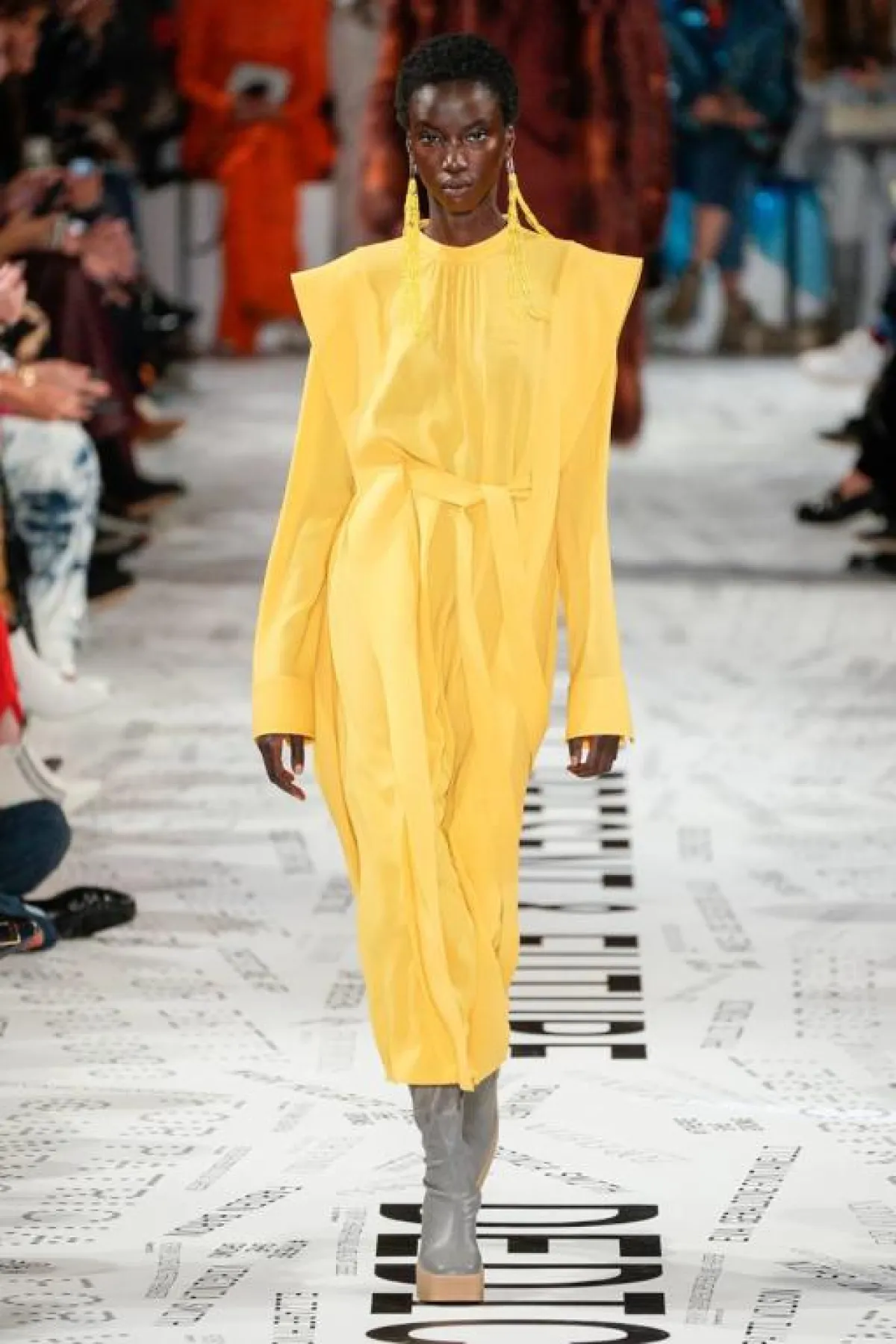 يمكنكِ اعتماد العبايات باللون الأصفر كهذا الموديل من ستيلا مكارتني Stella McCartney، للموديل مع الأكمام العريضة والمنفوخة، والمميز بهذه الدرجة أنها تناسب كل ألوان البشرة.