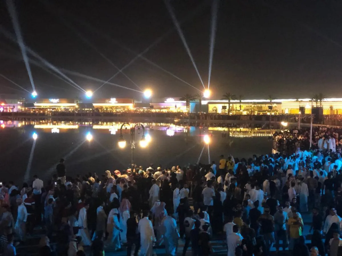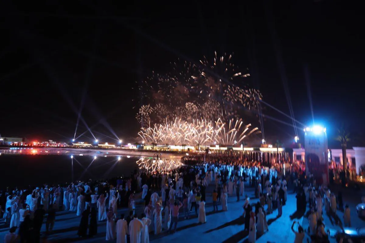 وبعد نهاية كلمته مباشرة، انطلقت ومضة كثيفة من الألعاب النارية، التي تجمَّلت حسنًا وجمالًا في منطقة البوليفارد، بإطلاق الألعاب النارية، التي زينت سماء العاصمة وجعلتها لوحة فنية كريستالية، على أنغام أغنية "تخيل" للفنان راشد الماجد، التي تمَّ إطلاقها قبل الموسم بأيام؛ من أجل هذه المناسبة، لتلوح الهواتف النقالة وهي تقوم بتصوير المشهد البديع، في ظل ترحيب كبير حظي به الافتتاح.