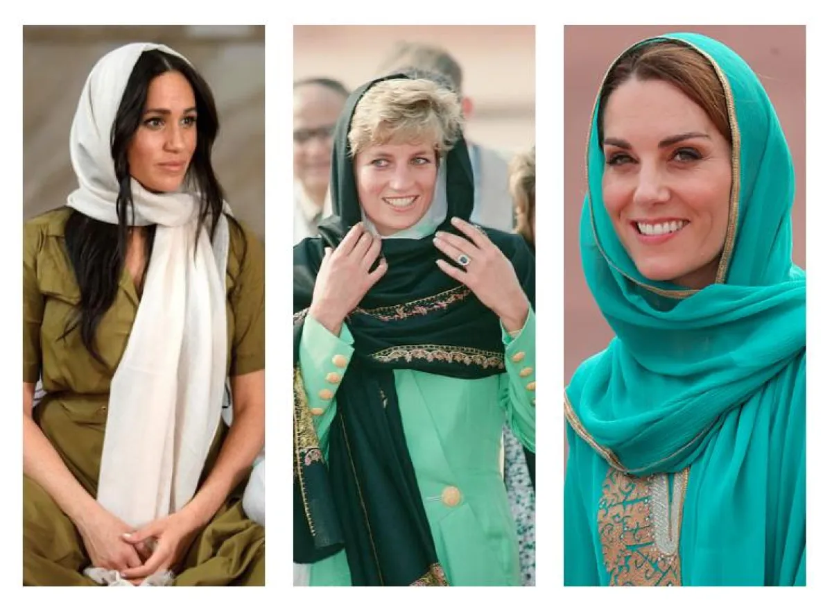 بعد الراحلة ديانا، ميغان ماركل وكايت ميدلتون في الحجاب، شاهدي الصور وأخبرينا رأيكِ بهذه الاطلالات ذات الطابع الشرقي التي تألقت بها نساء العائلة المالكة.