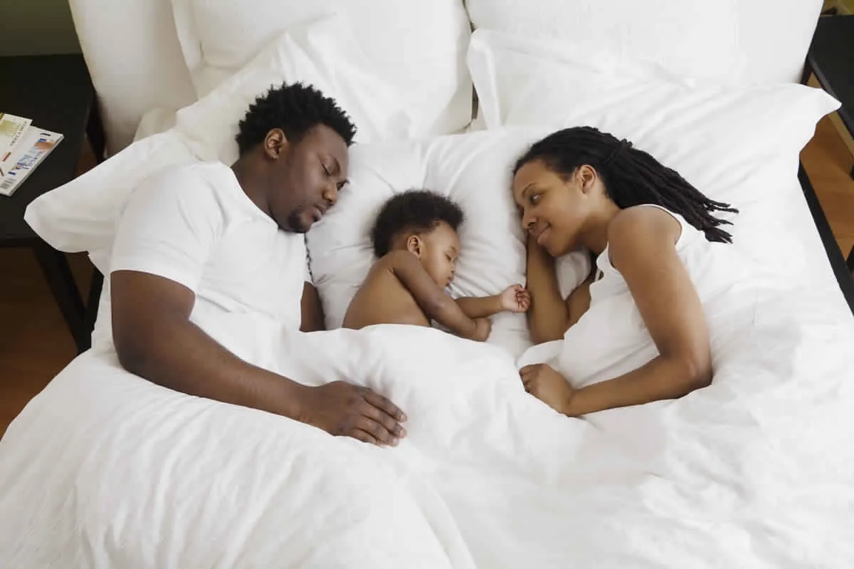 - إرهاق الطفل وعدم حصوله على القسط الكافي من النوم يظهر في صورة اضطرابات أثناء نوم الطفل قد تستمر لشهور طويلة، مثل كثرة تقلبه أو تململه وضغطه الشديد على الأسنان، أو مص الشفاه، أو الكلام أثناء النوم أو المشي، أو قد يعاني من الإمساك، إصابته بديدان، شعور بالتخمة أو سوء تهوية أو تكدس الملابس وكثرة الأغطية.