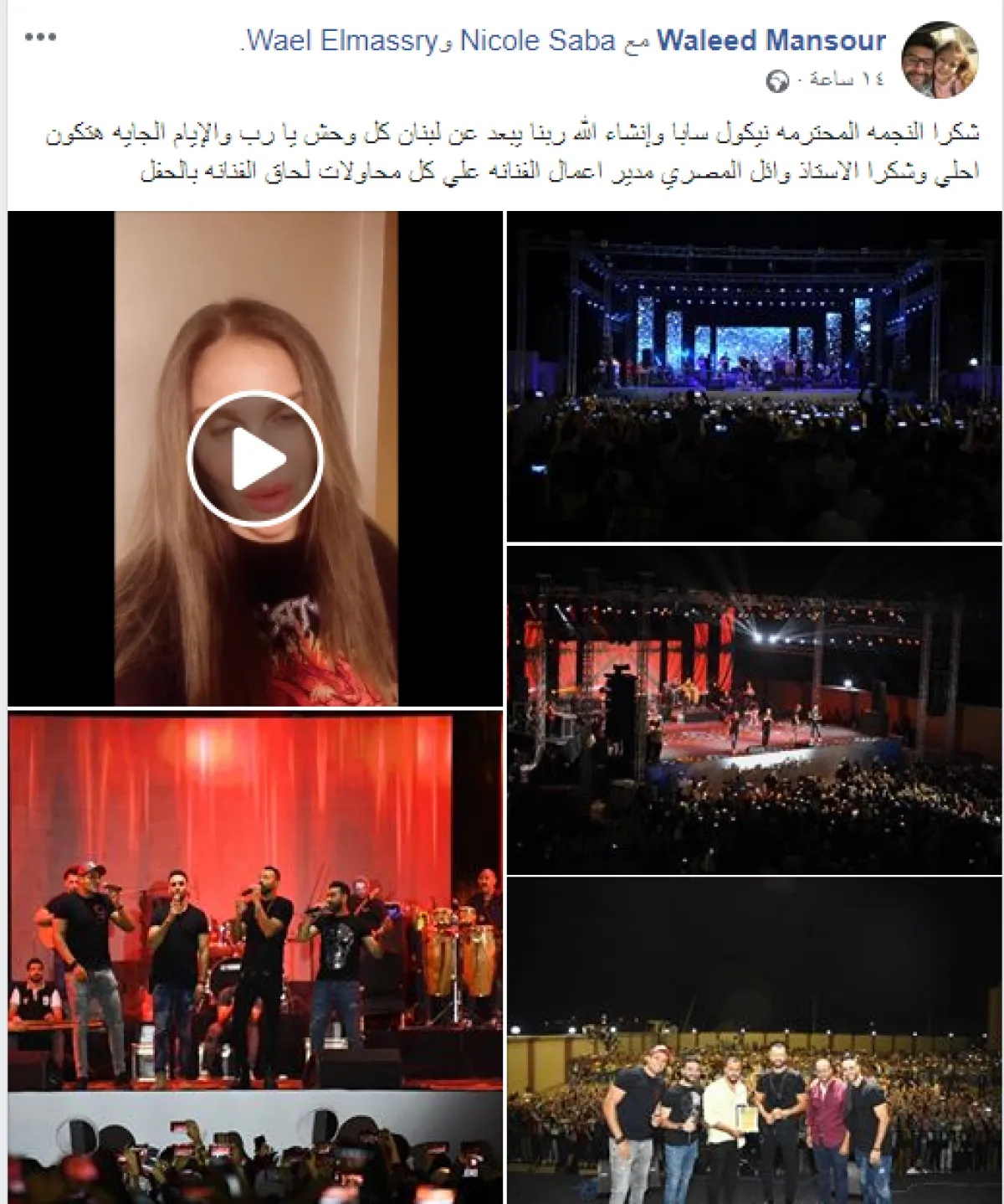 وعلق منظم الحفلات وليد منصور على رسالة نيكول سابا قائلا: شكرا النجمة المحترمة نيكول سابا وان شاء الله ربنا يبعد عن لبنان كل وحش يا رب والإيام الجاية هتكون احلي وشكرا الاستاذ وائل المصري مدير اعمال الفنانة على كل محاولات لحاق الفنانة بالحفل.
