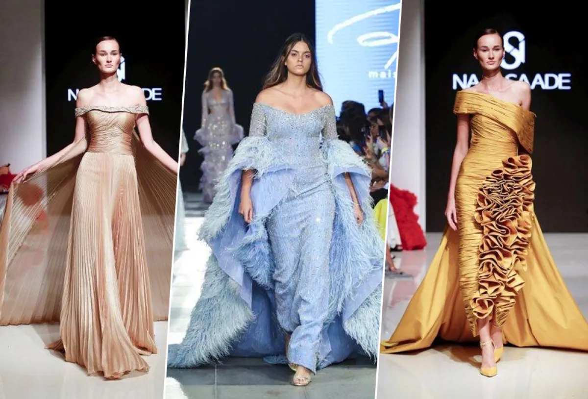 تنوعت الفساتين الأوف شولدر في تشكيلة Naja Saade لتناسب مختلف أشكال الجسم.