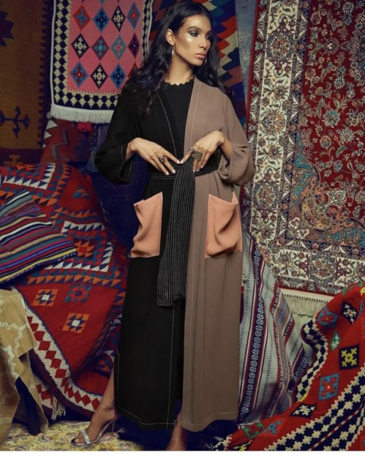 بعض موديلات الترينش تتميز بالجيوب الكبيرة، كونها في الأساس تعتمد على الستايل العملي، وقد تم تطبيق هذه التفصيلة الصغيرة بعبايه Mh Line مع الجيوب السومون، للعباية بدرجات الأسود ولون الكوفي، للمسة شبابية أنثوية، بألوان تجذب العين.