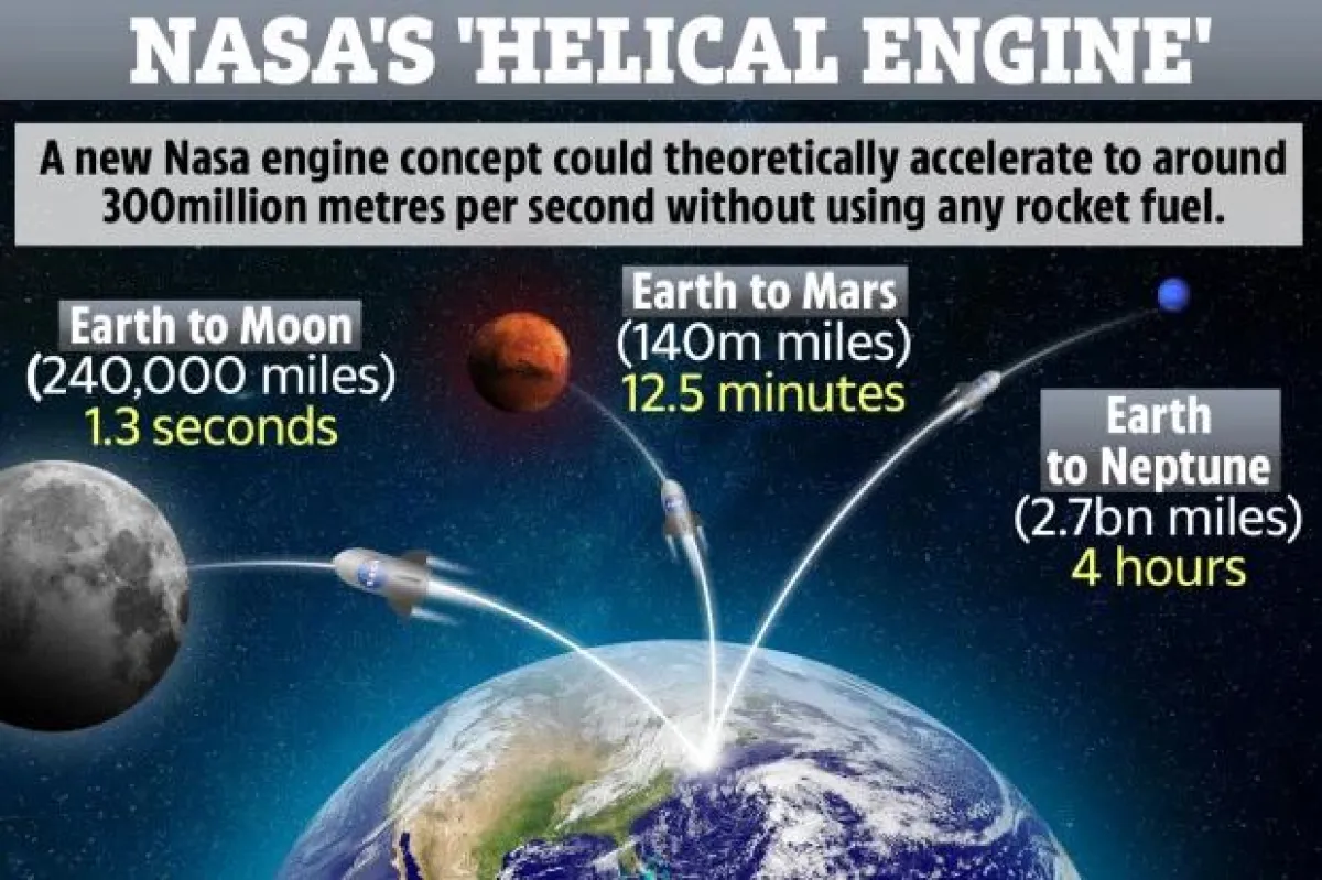ابتكر عالم في وكالة الفضاء الأمريكية ناسا مفهوماً جديداً لمحرك يقول إنه يمكن أن يتحرك بسرعة تقترب من سرعة الضوء، من دون الاستعانة بأي أجزاء متحركة أو حاجة إلى الوقود، وبحسب موقع «فوكس نيوز» فإن المفهوم الجديد الذي ابتكره العالم الدكتور «ديفيد بيرنز» من مركز مارشال لـ رحلات الفضاء التابع لناسا، عبارة عن «محرك حلزوني» يمكن استخدامه للسفر عبر المسافات بين النجوم وإرسال رواد الفضاء إلى القمر في حوالي ثانية واحدة والمريخ في أقل من 13 دقيقة.