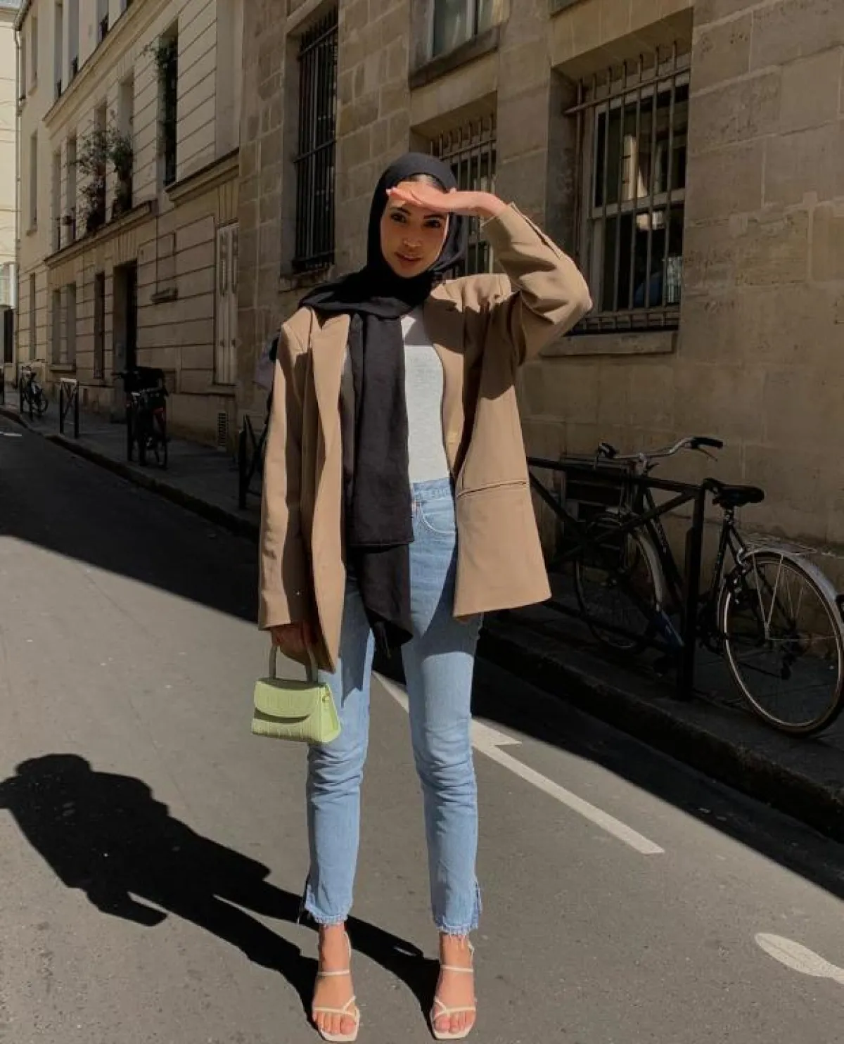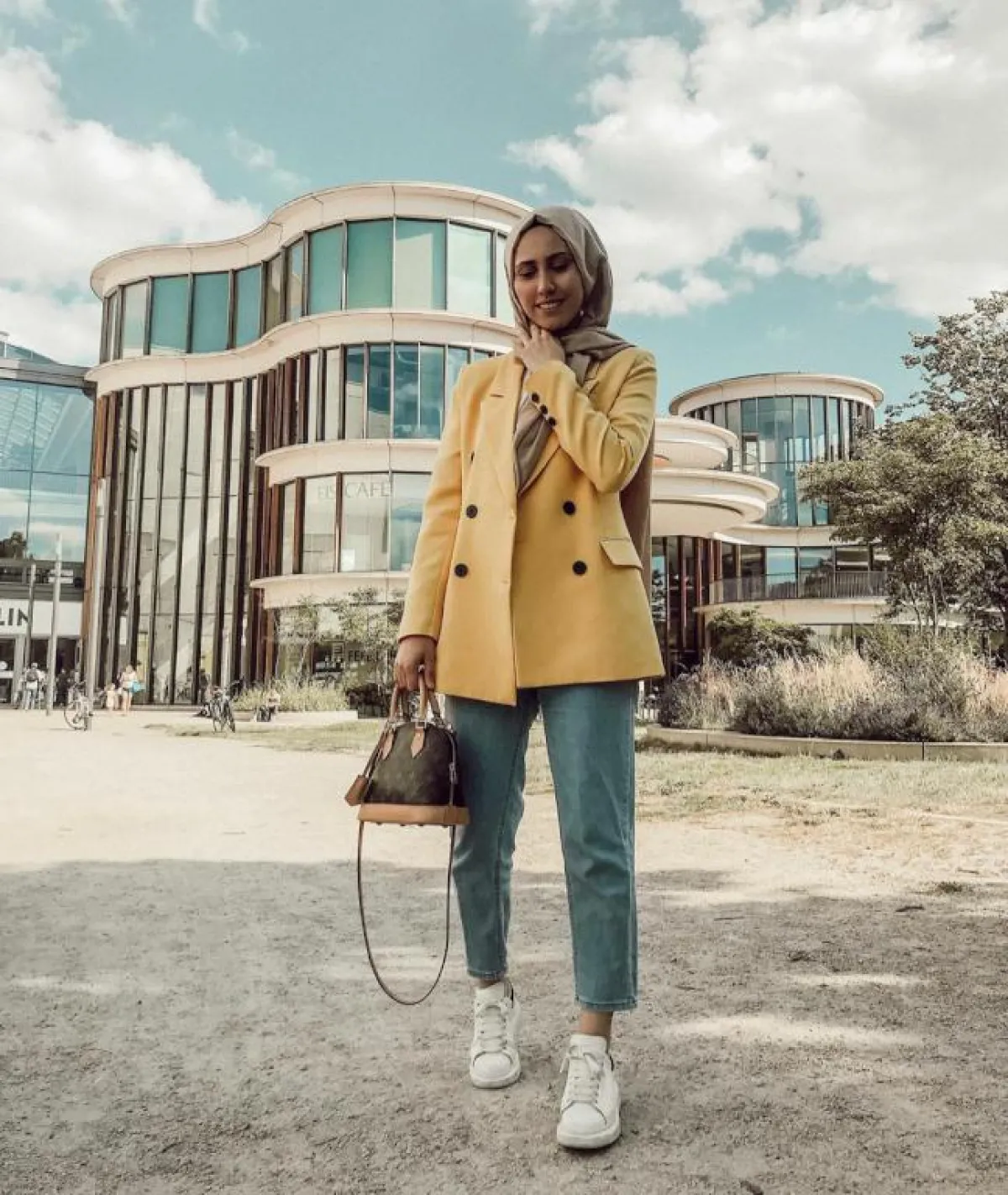 تعتبر الطريقة الأسهل لتنسيق البليزر هذا الموسم، انتقي موديل باللون الأصفر الخردلي ولائميه مع بنطال جينز داكن Skinny وتيشيرت أبيض وحذاء Pointy أو مع جينز واسع الأرجل Mom fit وحذاء رياضي أبيض.