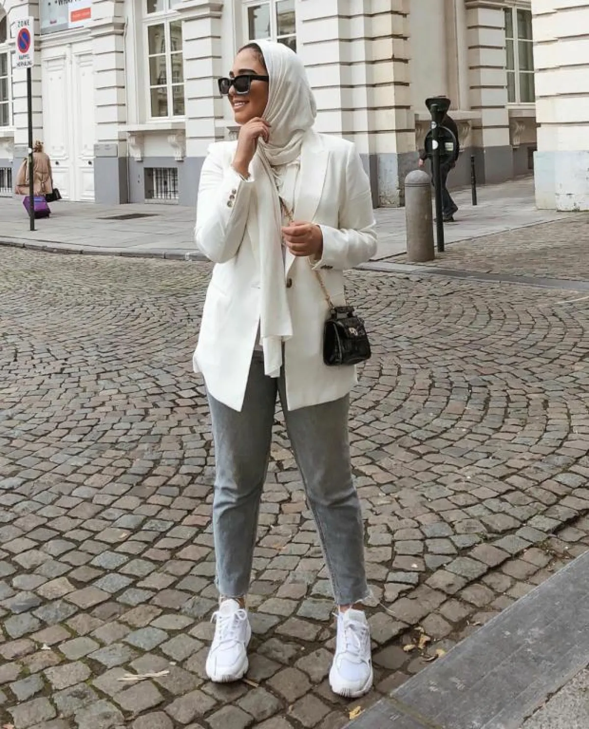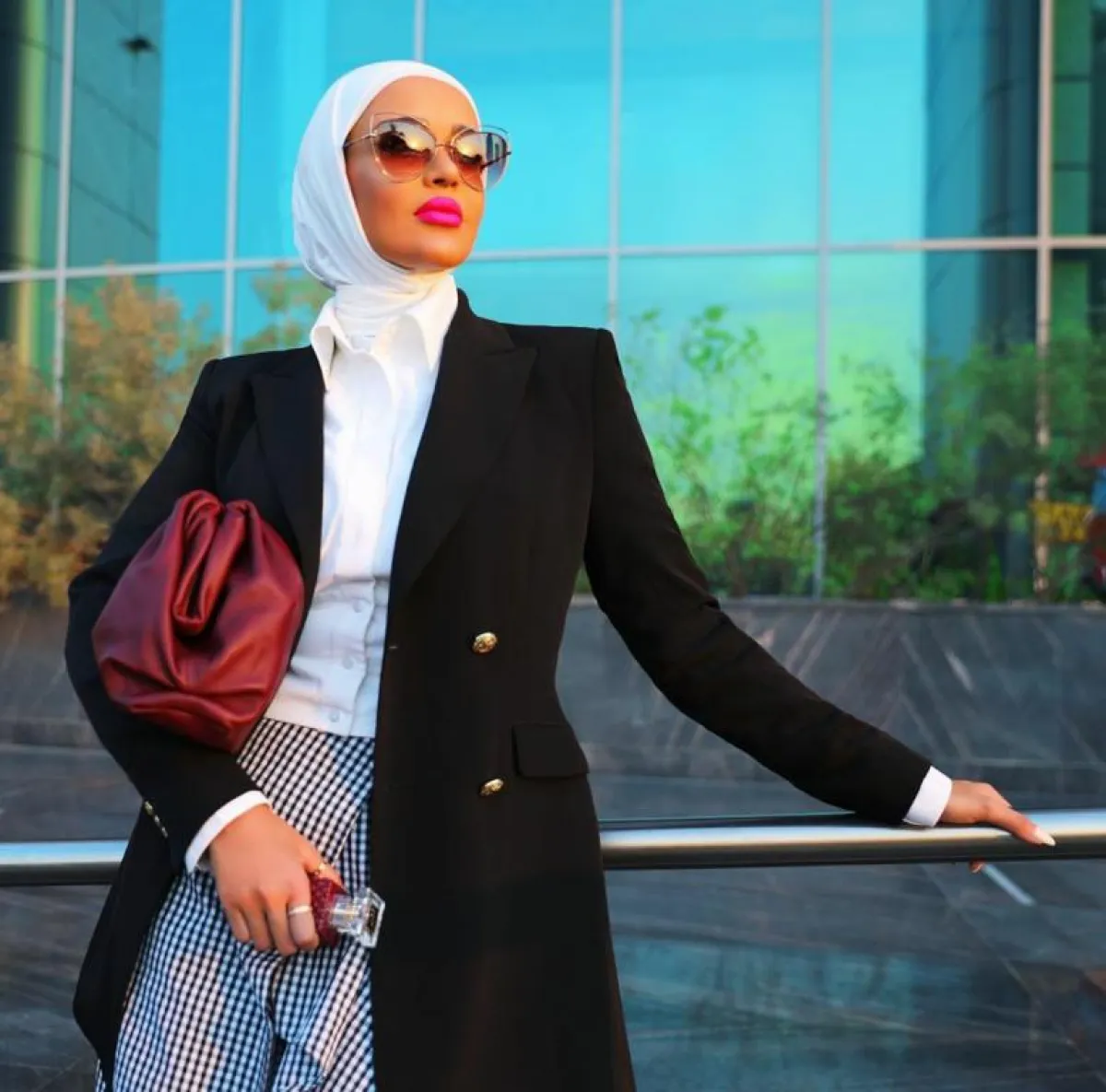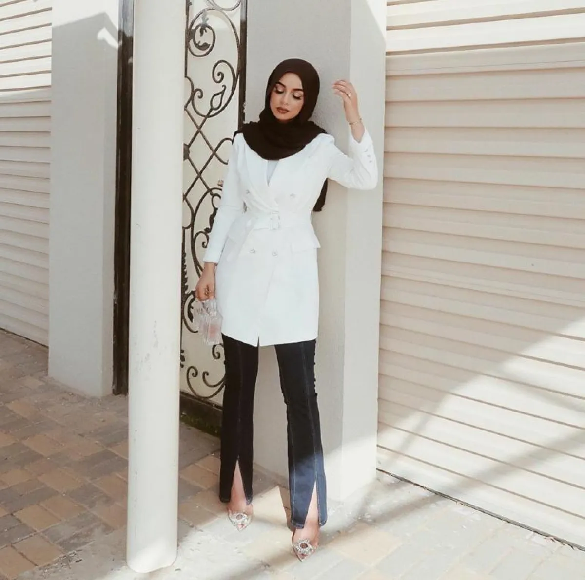 يعتبر الجاكيت البليزر من القطع الرسمية التي عادة ما تُنسق في إطلالات المكتب ولكن هذا الموسم تفننت الفاشينيستا المحجبات في تنسيقها بطرق غير إعتيادية، فاعتمدتها مدونة الموضة الشهيرة سمر البرشا مع تنورة بليسيه مكسره طويلة من نفس لون التوب والجاكيت وأنتعلت حذاء مدبب بكعب متوسط.