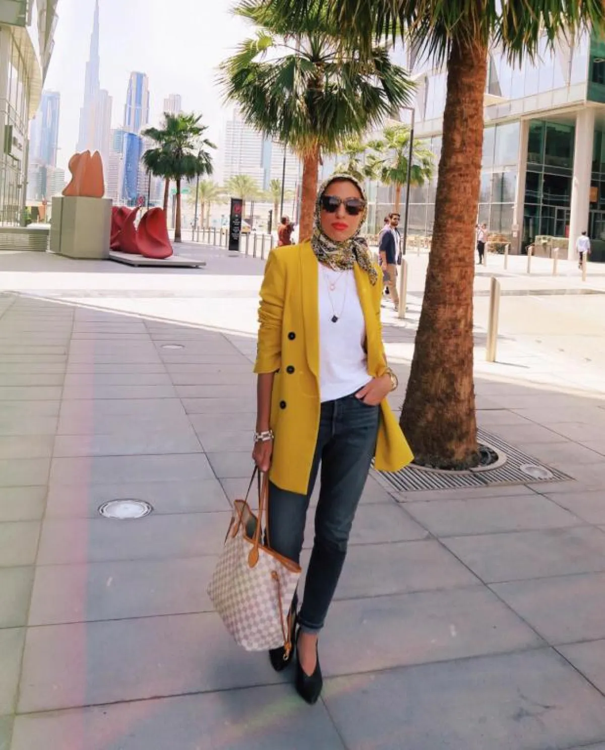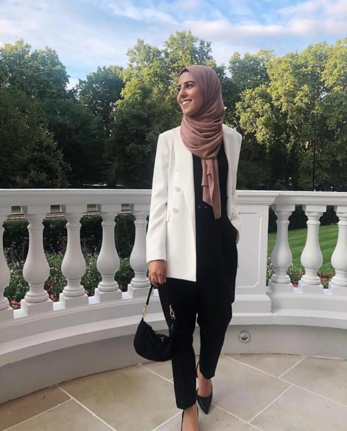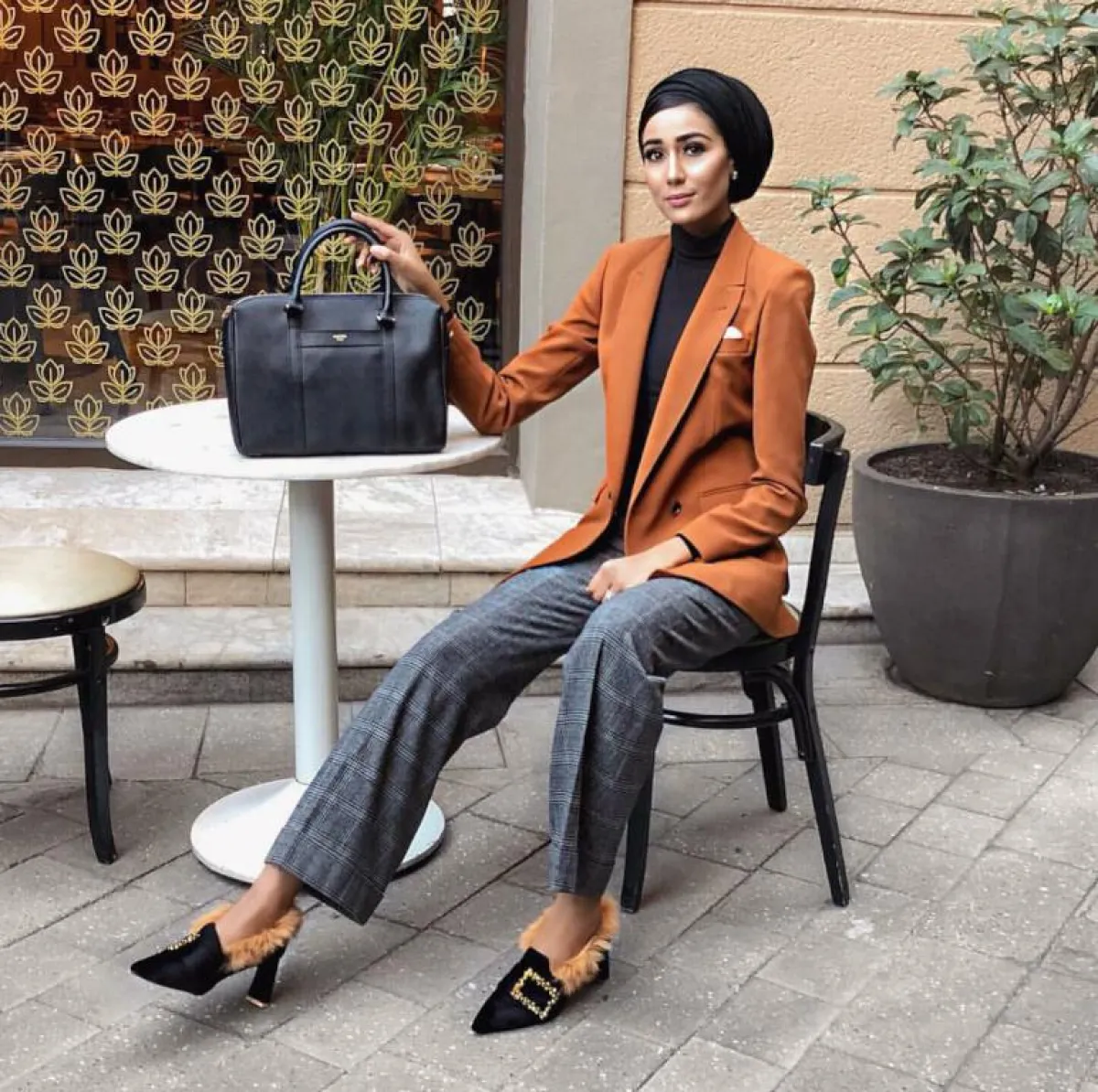 يعتبر الجاكيت البليزر من القطع الرسمية التي عادة ما تُنسق في إطلالات المكتب ولكن هذا الموسم تفننت الفاشينيستا المحجبات في تنسيقها بطرق غير إعتيادية، فاعتمدتها مدونة الموضة الشهيرة سمر البرشا مع تنورة بليسيه مكسره طويلة من نفس لون التوب والجاكيت وأنتعلت حذاء مدبب بكعب متوسط.