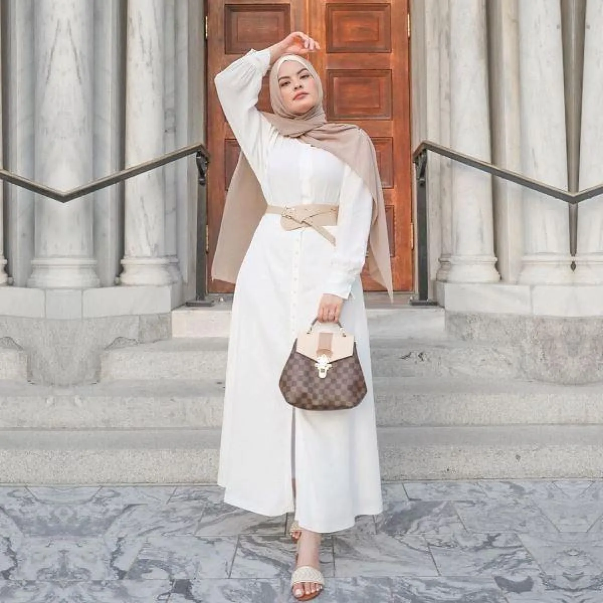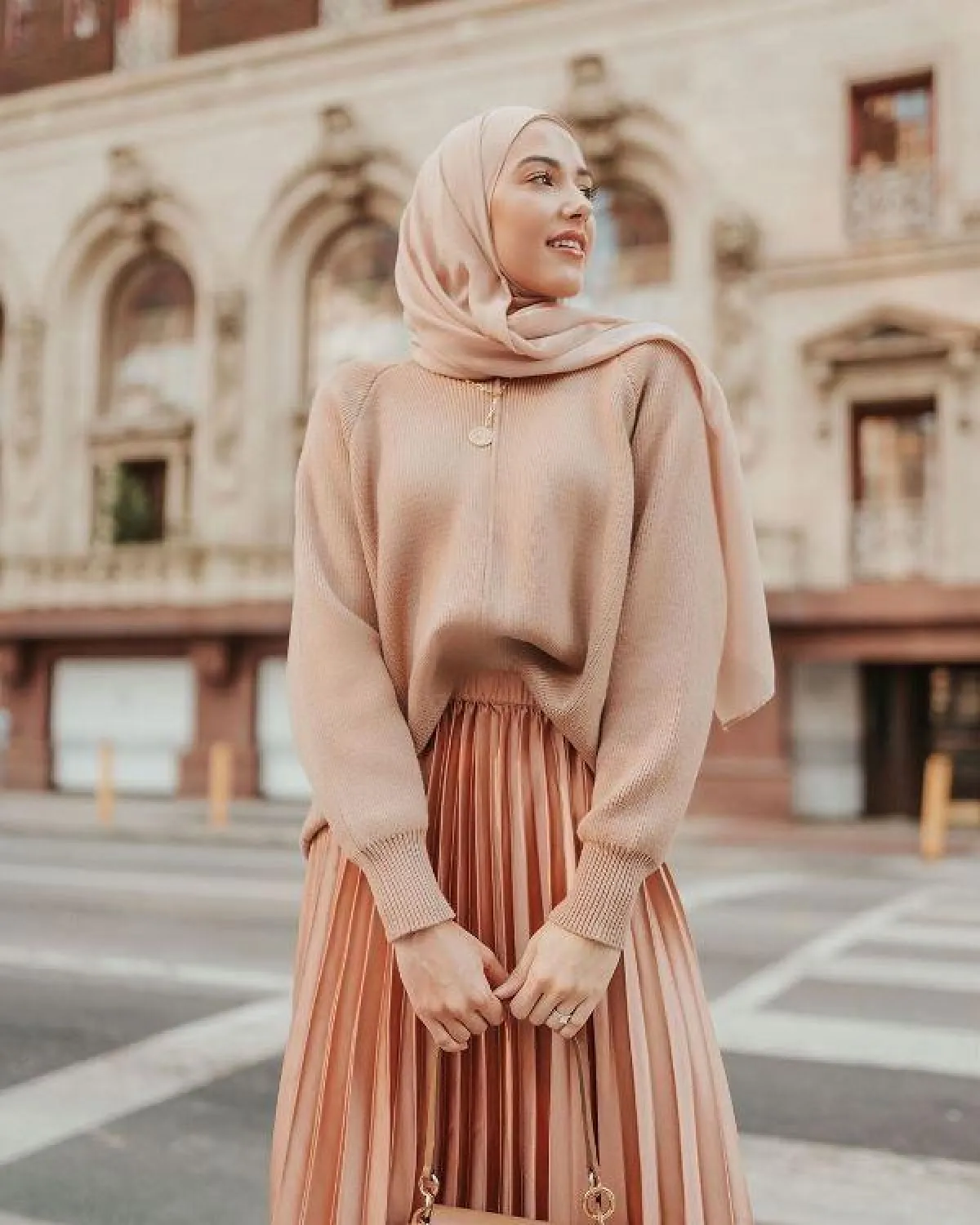 نعم، السكارف النيود قادر على أن يتماشى مع شتى ملابسك مهما كان ستايلها أو لونهاوصور الفاشينيستا المحجبات بلوكات آسرة مع السكارف النيود غير دليل على ذلك. اللافت أنه ثمة طرق كثيرة لتنسيق السكارف النيود مع ألوان ملابسك، فهو حليف غاية بالشياكة لإطلالة بالأسود بالكامل للوك مسائي ساحر. للإطلالات المنعشة النهارية والخروجات للغداء، الأبيض مع النيود هما حلف فولاذي لا يقام ويصعب أن لا تلحظي رقيهما سوياً. أما إن كنت تبحثين عن إطلالة رومانسية ساحرة، فتوب بالأزرق أو سترة بلايزر بالزهري سيمنحانك طلة ناعمة ومفعمة بالأنوثة تصبو اليها كل سيدة. حتى أنه بوسعك أن تنسقي حجابك النيود مع لوك بالأحمر لستايل غير متوقع.