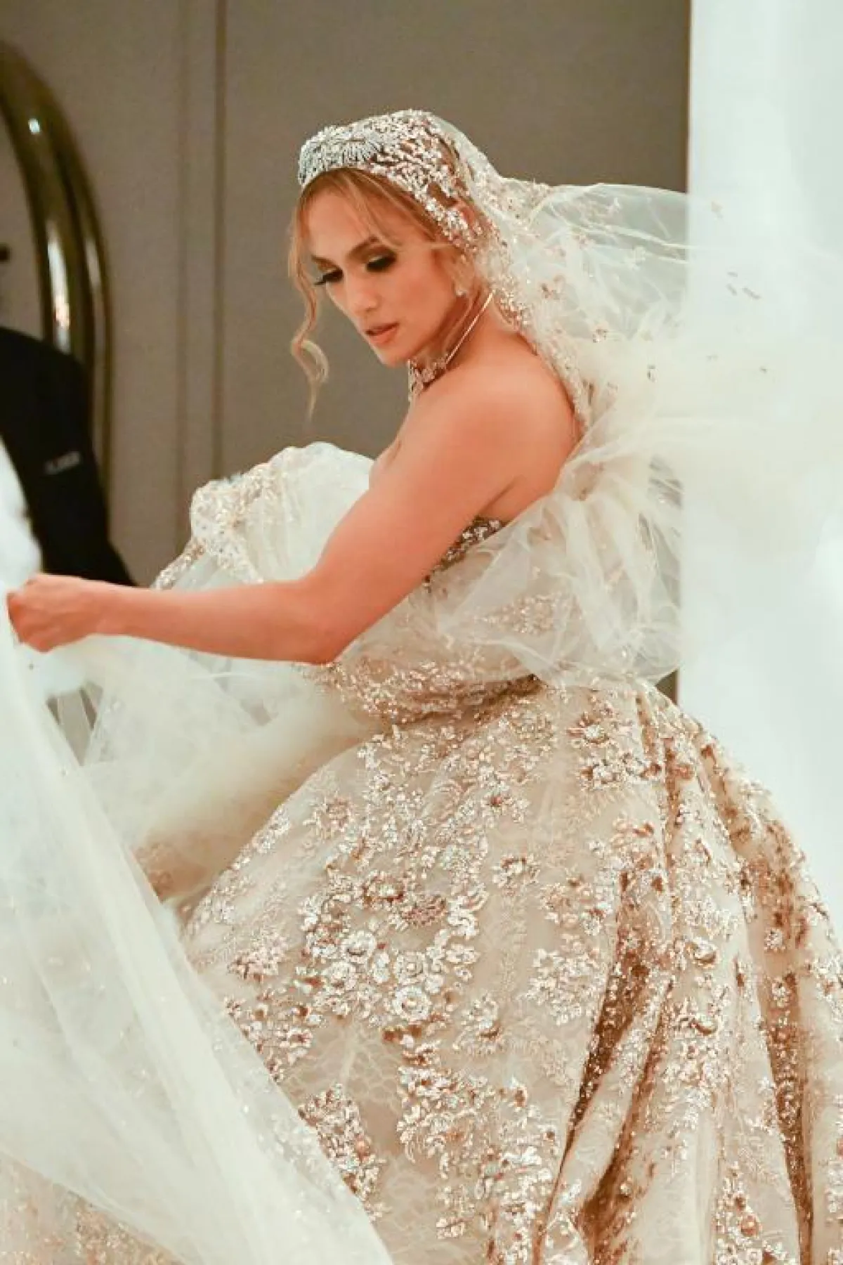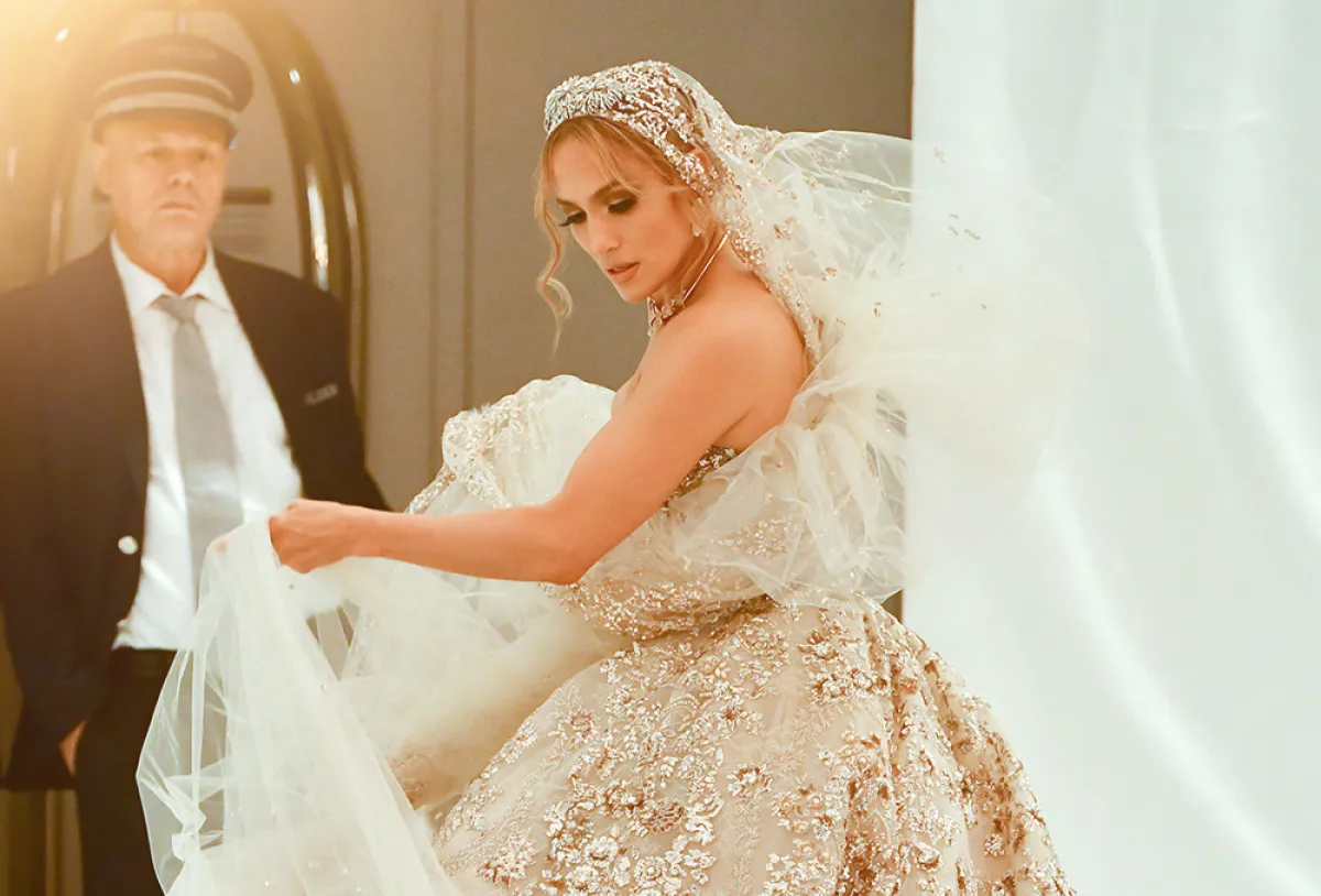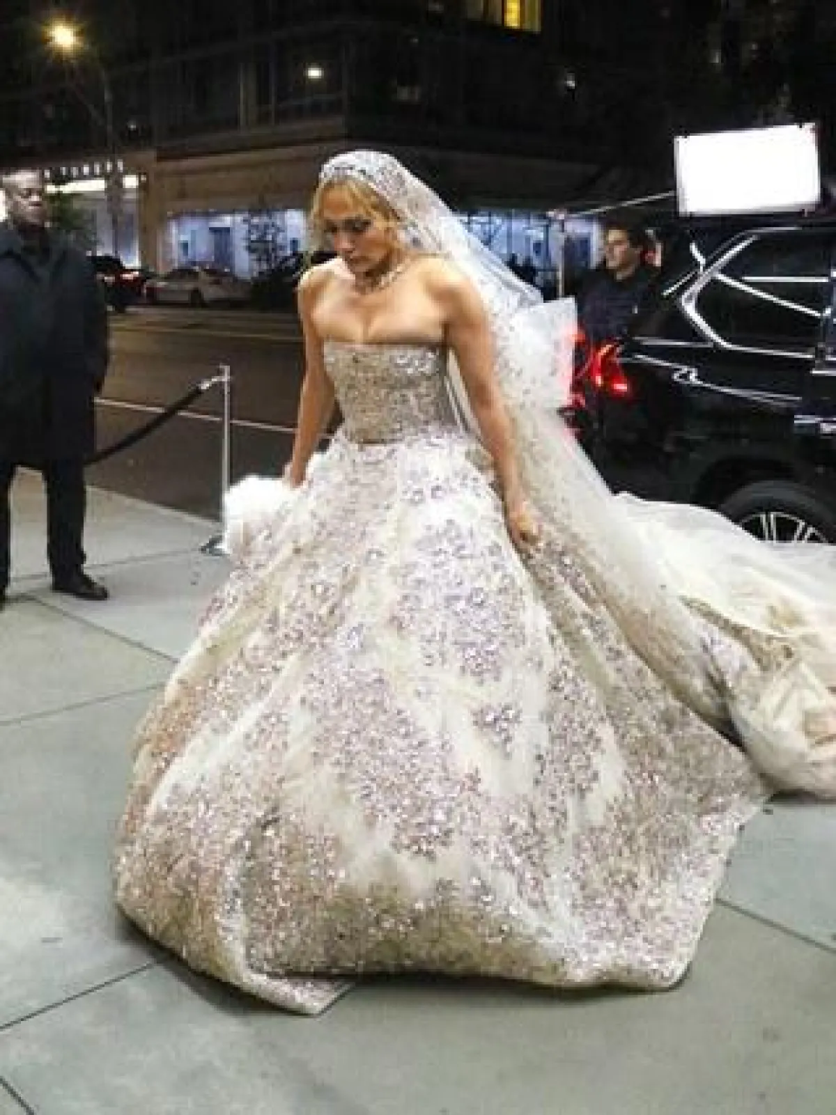 انتشرت العديد من الصور للنجمة العالمية جينيفر لوبيز بفستان الزفاف، فهل تزوجت من خطيبها ألكس رودريجز أم ماذا؟ إليك التفاصيل والصور ومن صمم لها فستان زفافها؟