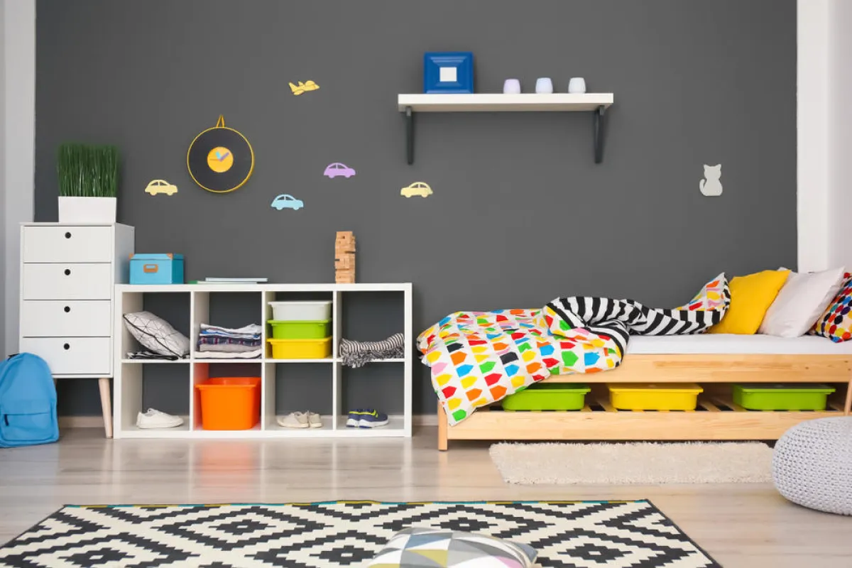 • في غرف نوم الأولاد، يُفضَّل استخدام ألوان الخشب الفاتحة المائلة إلى الأصفر، علمًا بأنه يتوافر لون خشبي مائل إلى الرمادي أو الأبيض. وهناك ألوان مثل الزيتي تحمل نقوشًا، ويُحبَّذ استخدامها في غرف نوم المراهقين. وفي غرف نوم الأطفال، لا بدّ من استخدام ألوان المفروشات والاكسسوارات فاتحة مبهجة، لا سيَّما الأزرق والفوشيا والأبيض والأصفر والبيج والفستقي والبرتقالي.