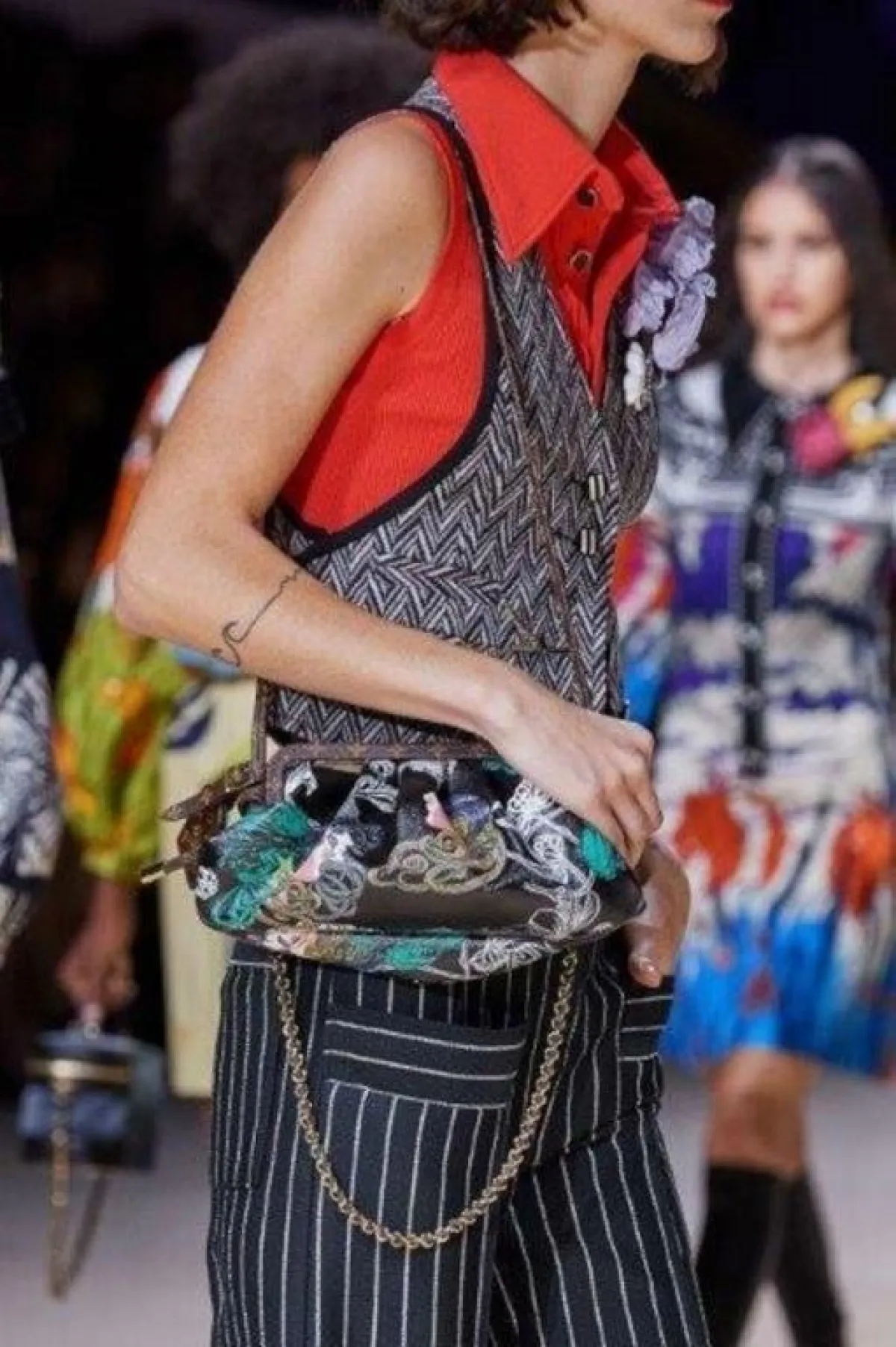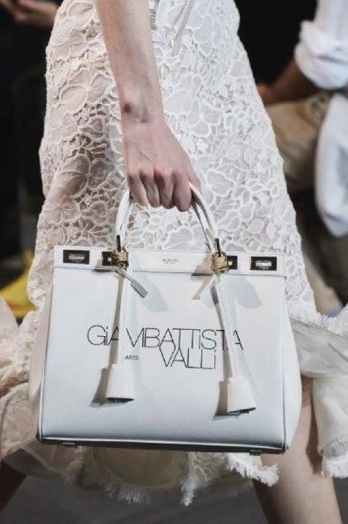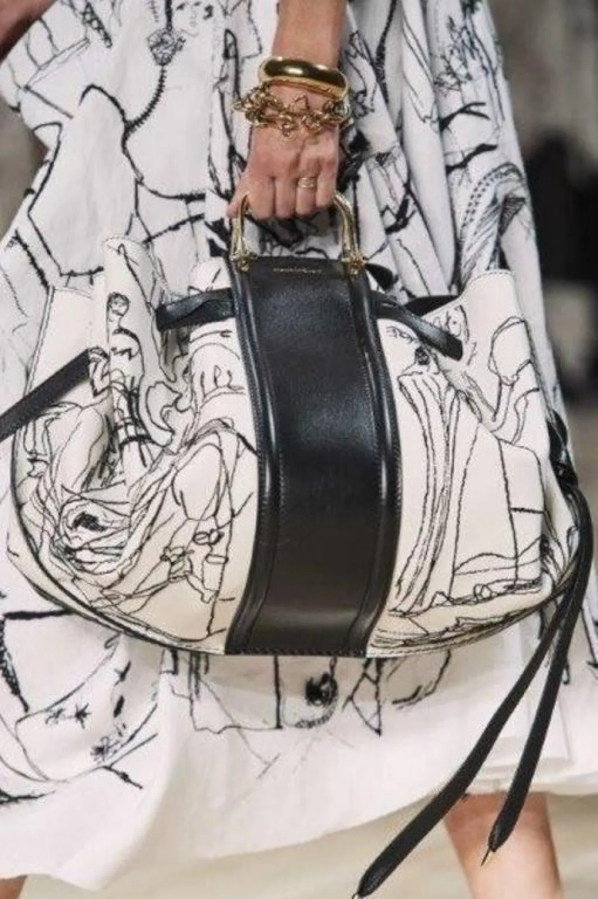 كانت شنط اليد المطبعة بالشعارات لا سيما الشعار الأيقوني للدار نجمة عروض أسبوع باريس، فصادفناها لدى جيامباتيستا فالي Giambattista Valli ولويس فيتون Louis Vuitton، أعتمديها لتخفي البطن البارز.