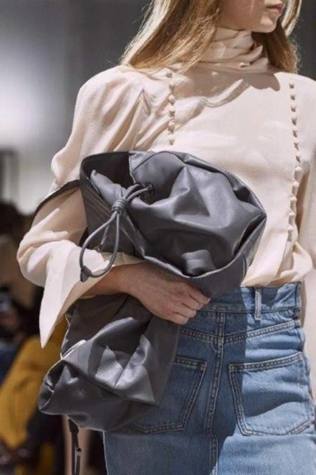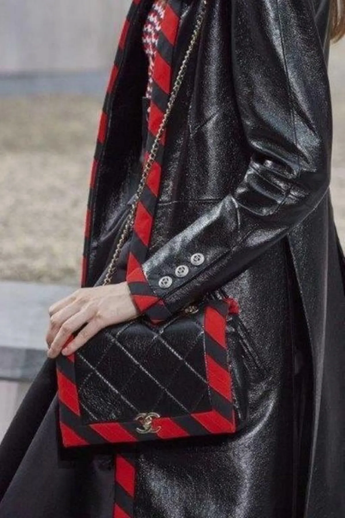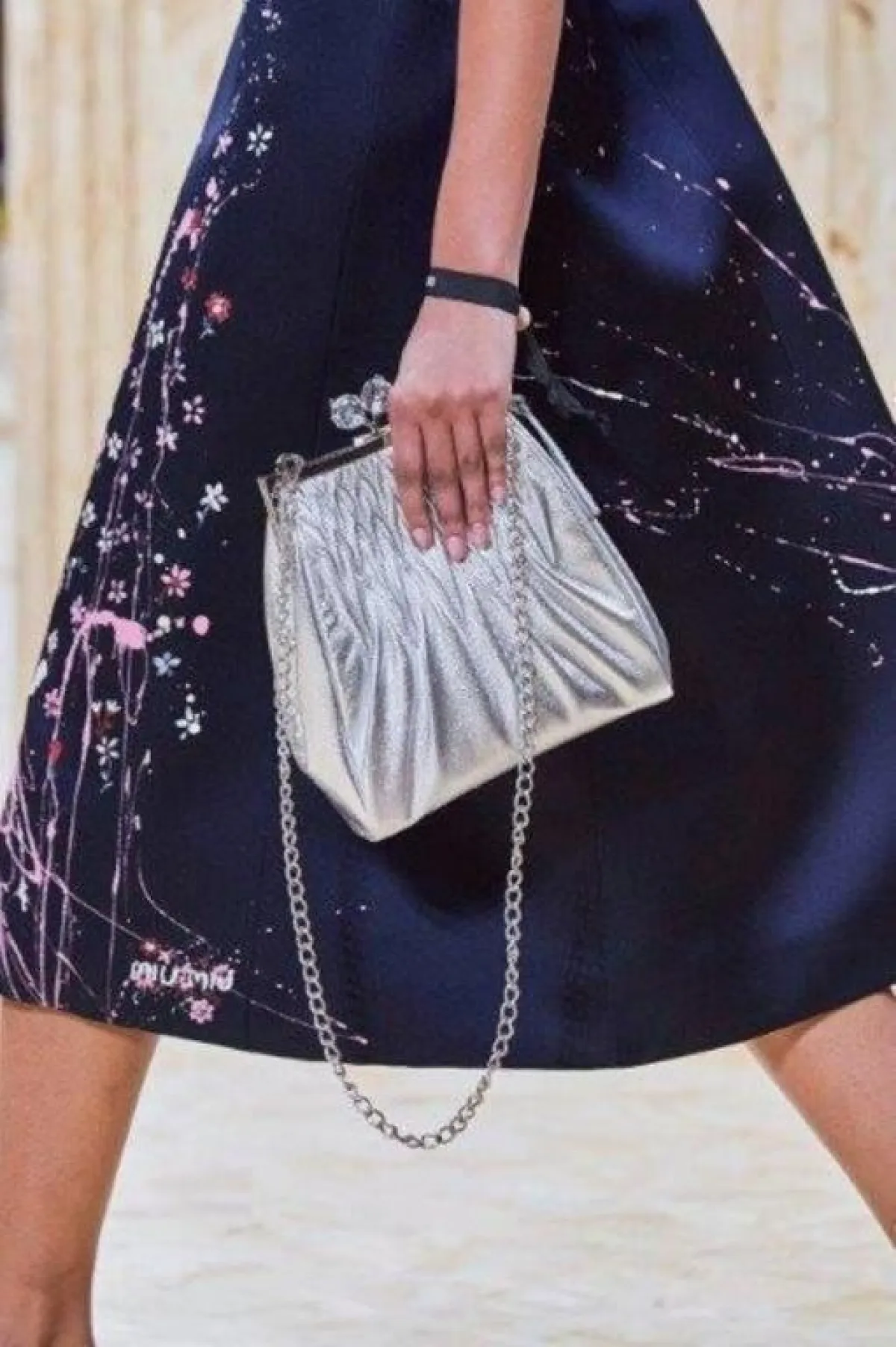 كانت شنط اليد المطبعة بالشعارات لا سيما الشعار الأيقوني للدار نجمة عروض أسبوع باريس، فصادفناها لدى جيامباتيستا فالي Giambattista Valli ولويس فيتون Louis Vuitton، أعتمديها لتخفي البطن البارز.