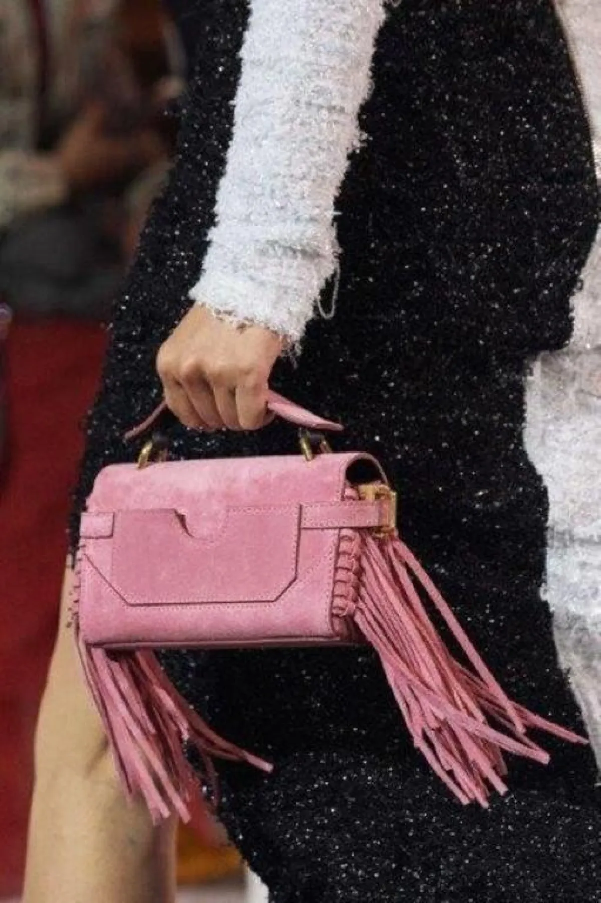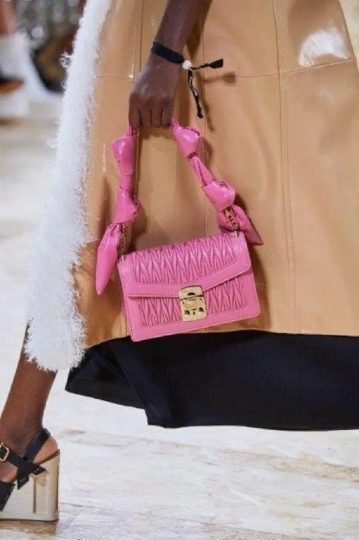 نعكست موضة الريش والأهداب على حقائب ربيع 2020، فغطت بعض التصاميم الكبيرة بالكامل مثل حقيبة فالنتينو Valentino البيضاء والتي نرشحها للممشوقات أو حقيبة الكتف الفوشيا متوسطة الحجم من توقيع بالمان Balmain والتي تناسب القصيرات.