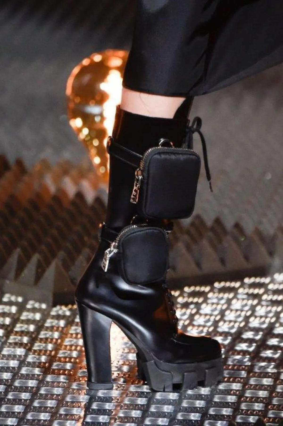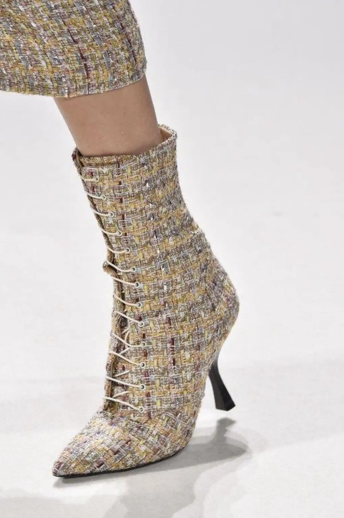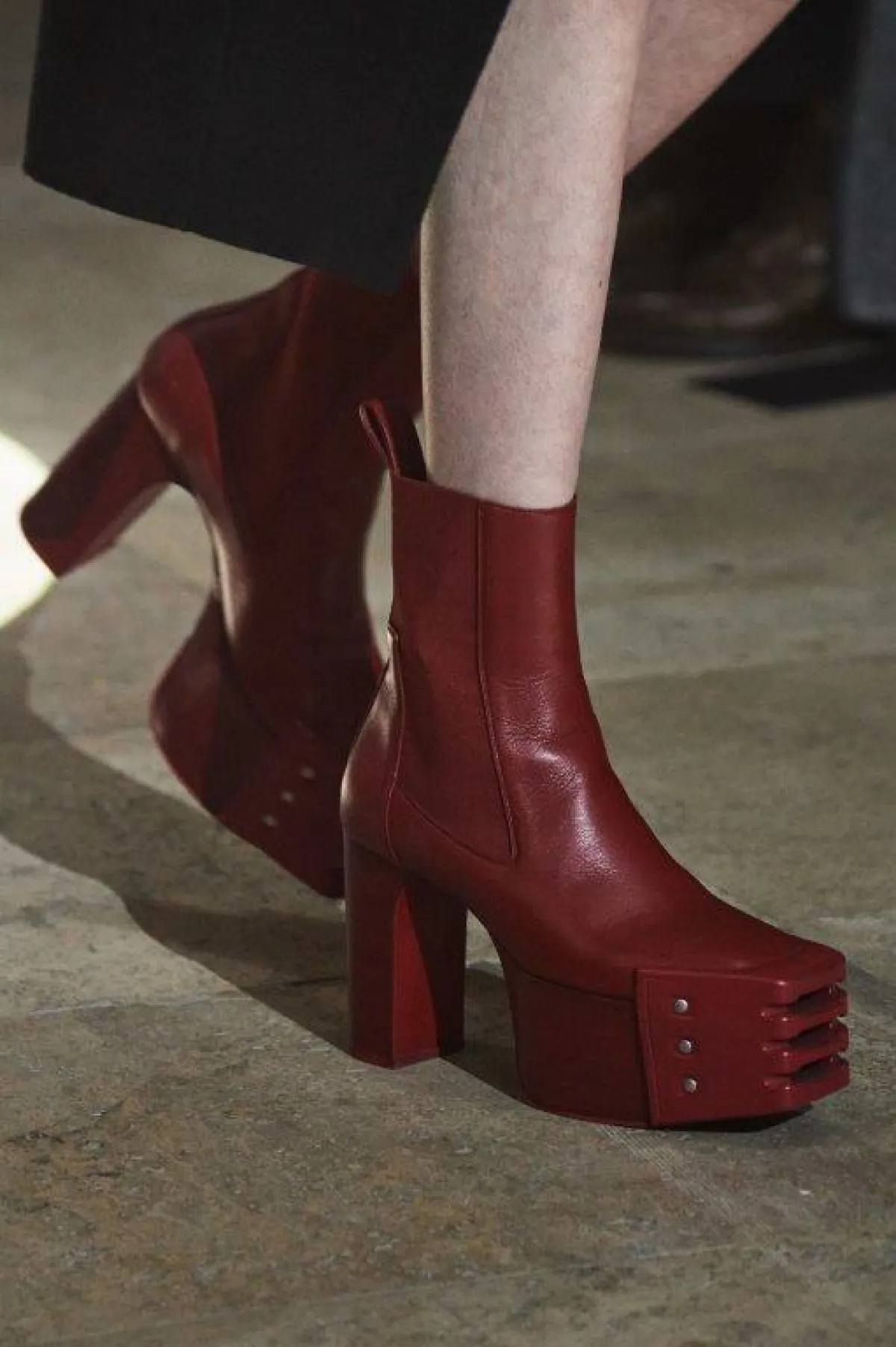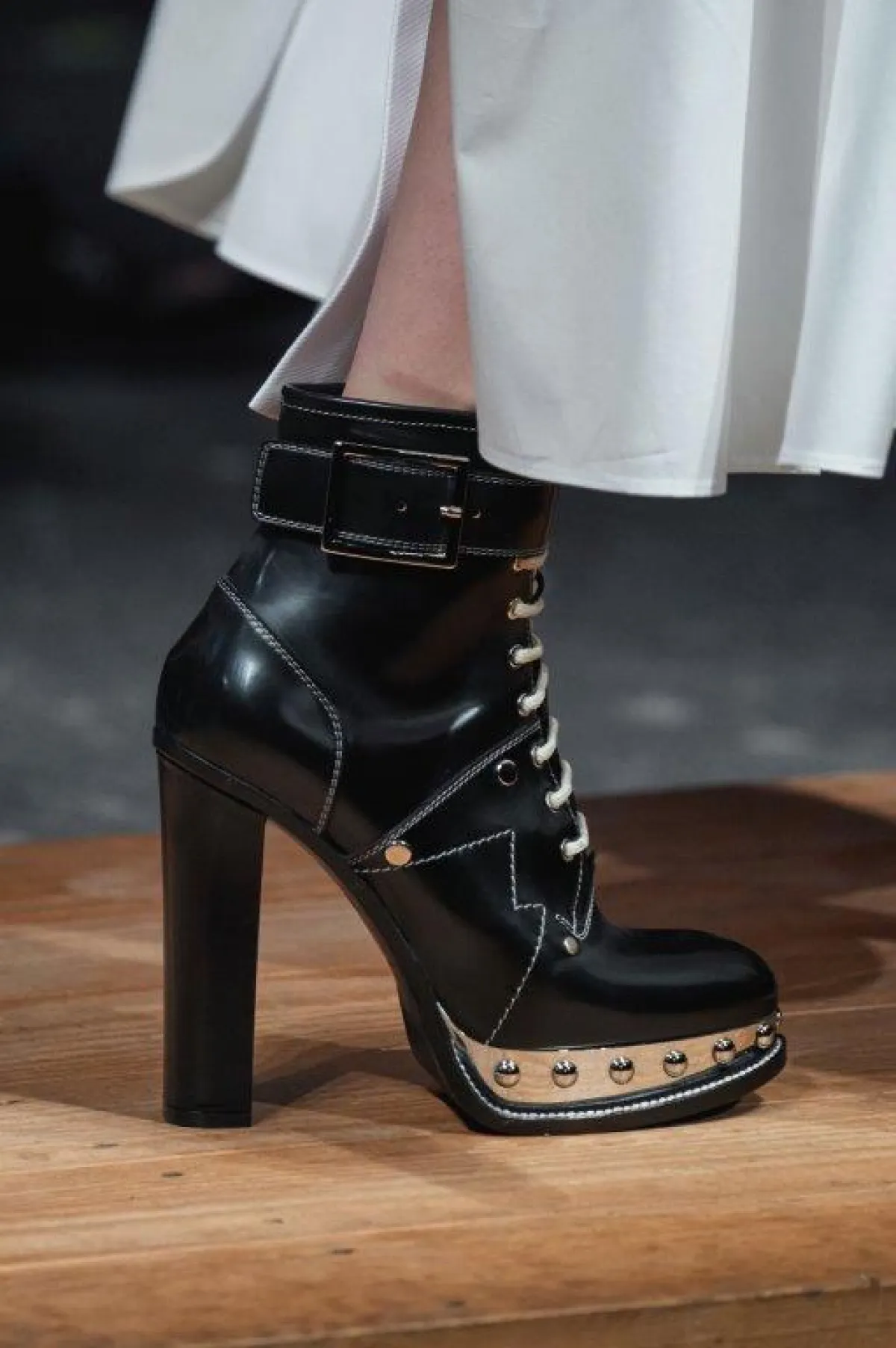 أحتلت أحذية البوت المصممة بكعوب عريضة Chunky boots قسم كبير من عروض كبريات الدور العالمية فزينت إطلالات عارضات فالنتينو Valentino ولويفي Loewe، تفاديها اذا كنتِ قصيرة القامة واستعيضي عنها بموديلات مصممة بكعوب رفيعة مثل تصاميم Rodarte وZimmermann.