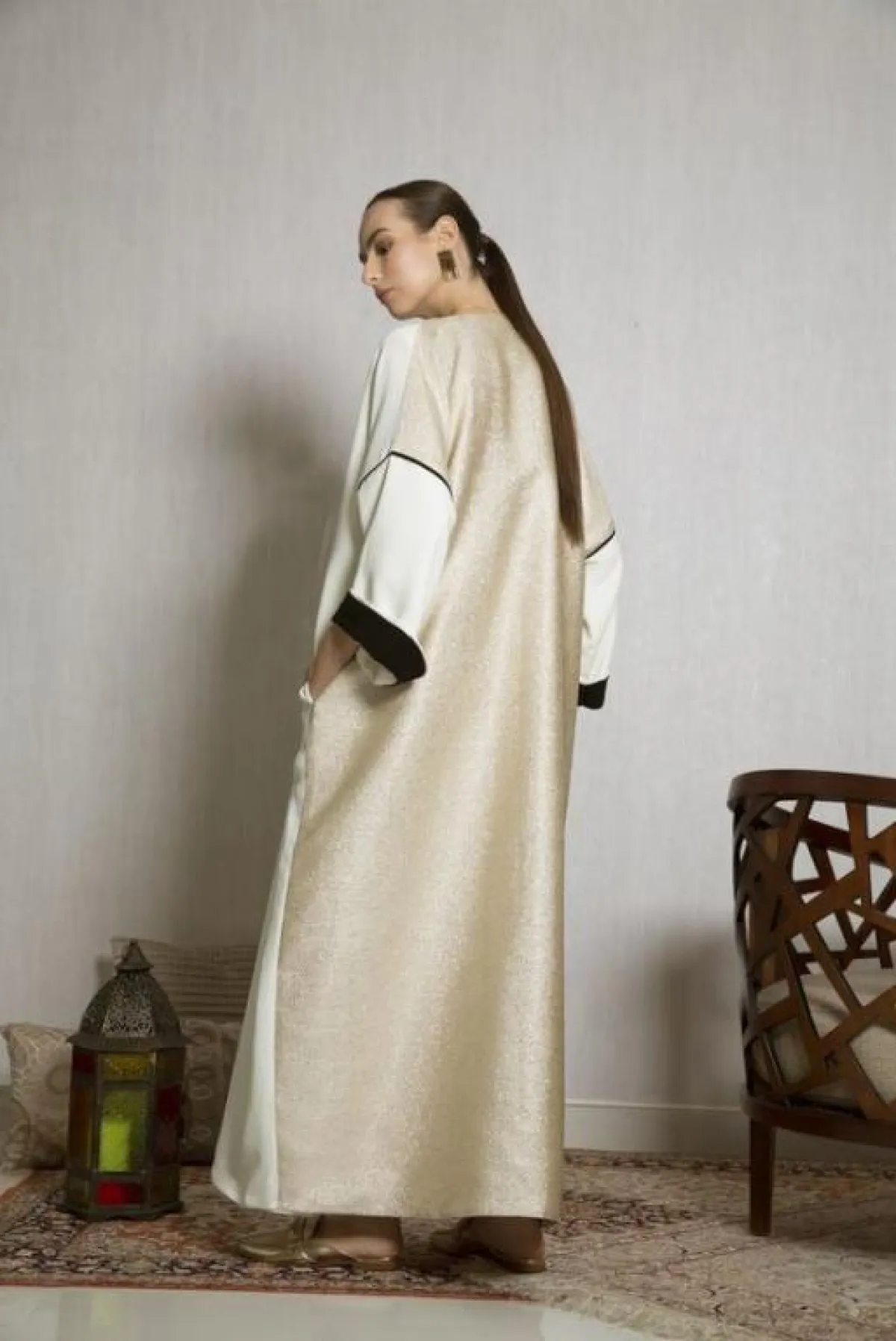 عبايه ميتالك نود كريمي مفتوحة لاطلالة النهار