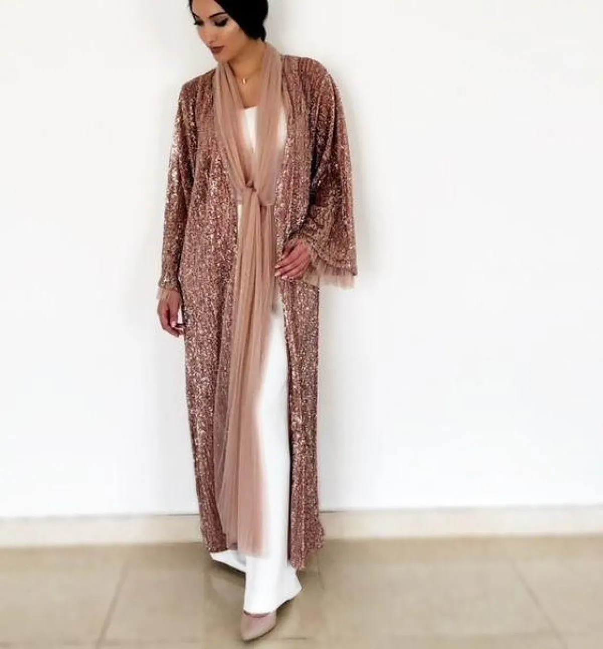 من الممكن أن تنسقيها مع الفساتين الطويلة، باللون الأبيض وحجاب أوف وايت، وكلتش نحاسي لاطلالة لافتة للأنظار.