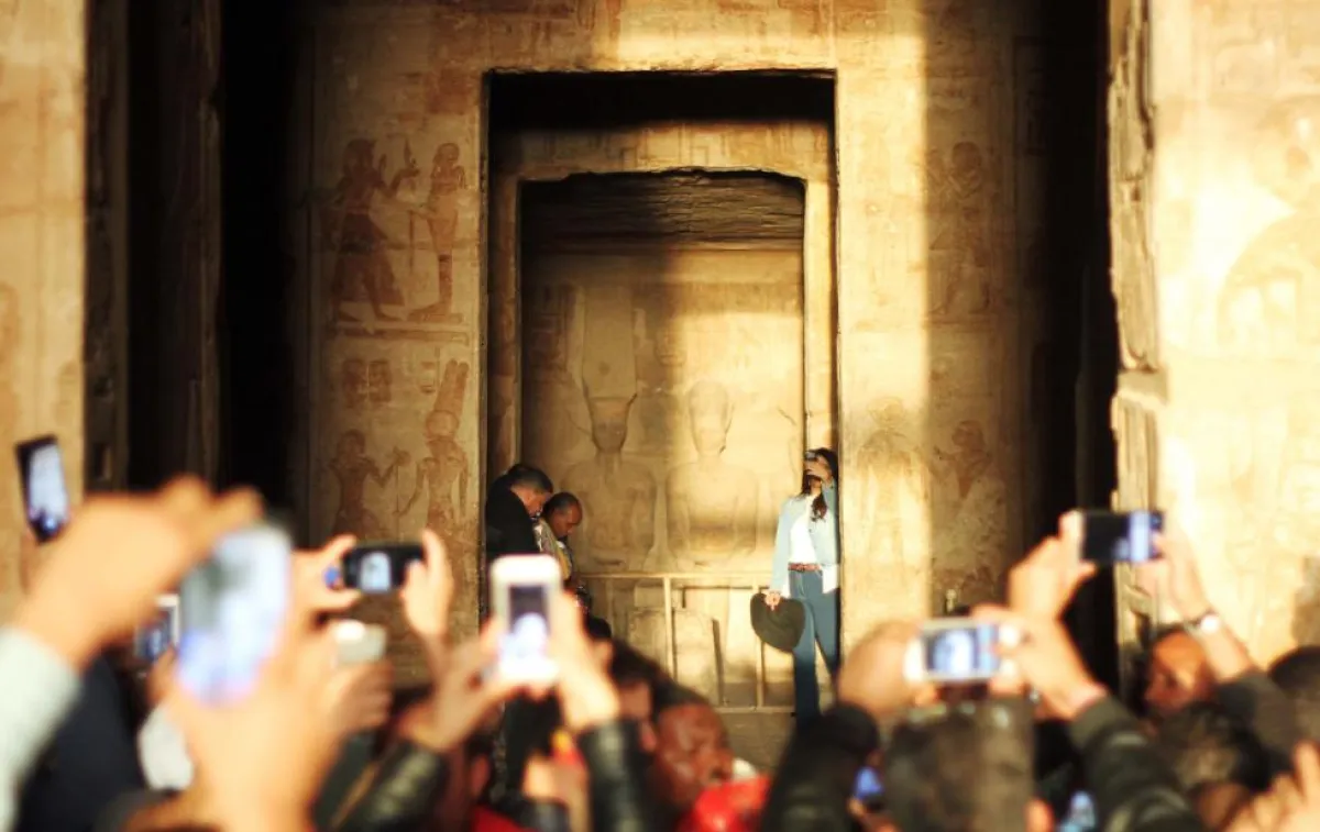 وفي هذين التاريخين من كل عام، يتجمع قرابة الـ5 آلاف سائح من مختلف دول العالم، حتى يشاهدوا هذه الظاهرة السنوية وسقوط الشمس على تمثال رمسيس الثاني في معبد أبوسمبل الواقع جنوب أسوان، والتي حدثت يوم الثلاثاء الماضي. وفي كل مرة تدخل الشمس من واجهة المعبد قاطعة مسافة تقارب الـ200 متر لتصل إلى منطقة «قدس الأقداس»، التي تضم تمثال رمسيس الثاني وهو جالس ومحاط بكل من تمثال رع حور أختي، وتمثال آمون.
