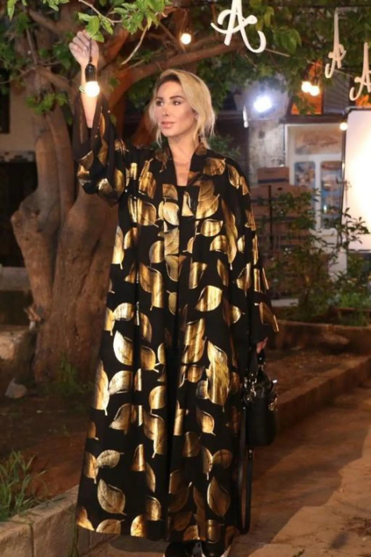 لفتنا هذا الموديل للعبايه الواسعة مع رسومات الأشجار بلمسة ميتالك عصرية، تمنحك لوك غنيًّا ومترفًا في المناسبات المسائية، كما أنّ التصميم الواسع يجعله مناسبًا لكل الصبايا، نسقيه على طريقة جويل مع صندل وشنطة سوداء، ويمكنكِ كذلك اعتماد الحجاب الأسود لاطلالة متناغمة أكثر.