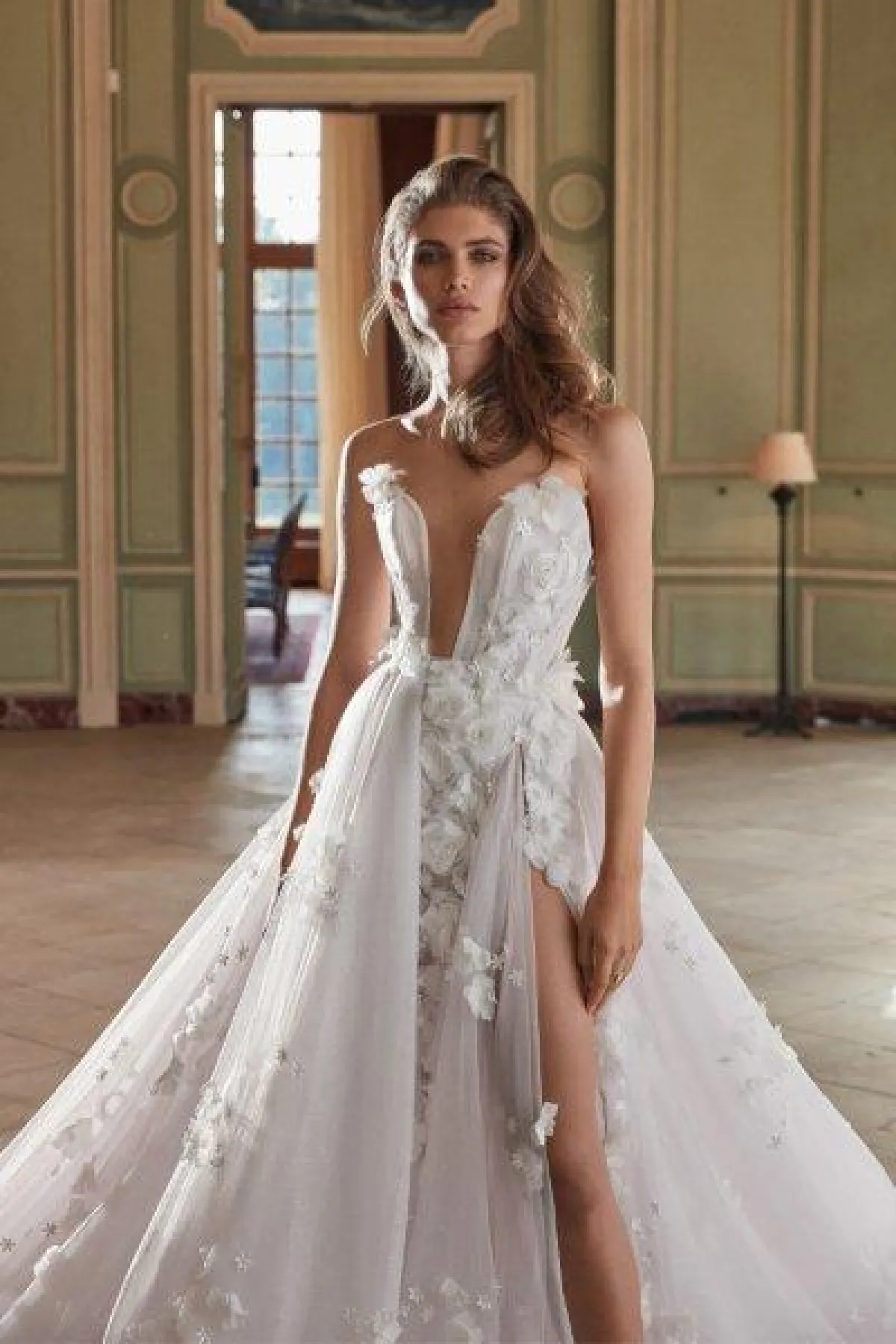 قدمت ماركة Galia Lahav فساتين مزينة بالورود البيضاء، سواء بقصّات منفوشة أو ضيقة.