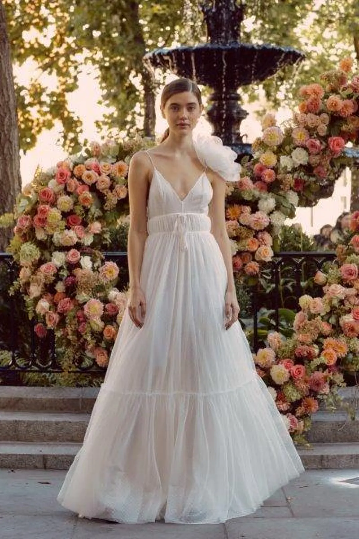 وفي أسبوع الأعراس بنيويورك 2020، قدمت العديد من الماركات فساتين زفاف مزينة بالورود، سواء من خلال التطريزات أو الطبعات، بالإضافة للورود البارزة التي تزين بعض التصاميم.