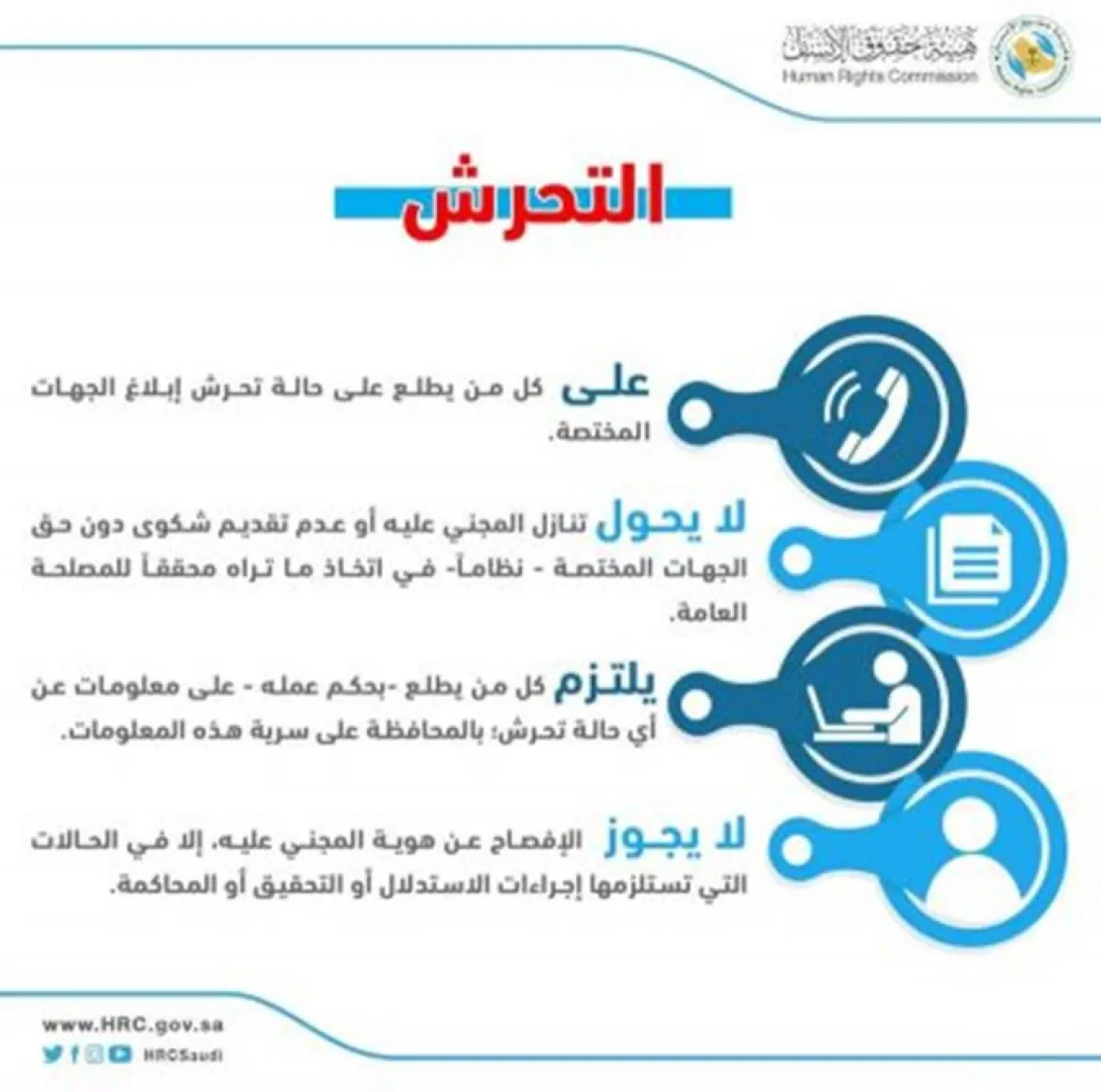 حقوق الإنسان كل من يطلع على حالة تحرش عليه الإبلاغ