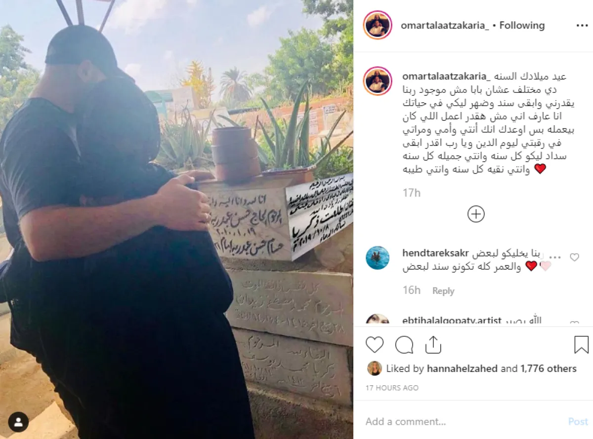 عمر نشر صورة له وهو يحتضن شقيقته من أمام قبر والده في الإسكندرية، وعلق عليها عبر حسابه بموقع إنستقرام قائلا: عيد ميلادك السنه دى مختلف عشان بابا مش موجود ربنا يقدرنى وأبقى سند وضهر ليكى فى حياتك أنا عارف إنى مش هقدر أعمل اللى كان بيعمله بس اوعدك إنك أنتى وأمى ومراتى فى رقبتى ليوم الدين