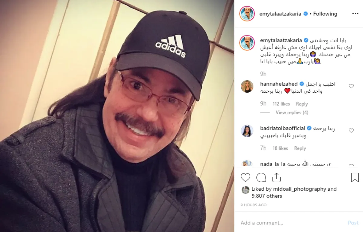 ووجهت إيمي لوالدها الراحل رسالة جديدة فجر اليوم الخميس تمنت فيها الموت وقالت تعليقا على صورته بحسابها بموقع إنستقرام: بابا انت وحشتنى اوى بقا نفسى اجيلك اوى مش عارفه أعيش من غير حضنك ربنا يرحمك ويبرد قلبى يا رب .. مين حبيب بابا انا.