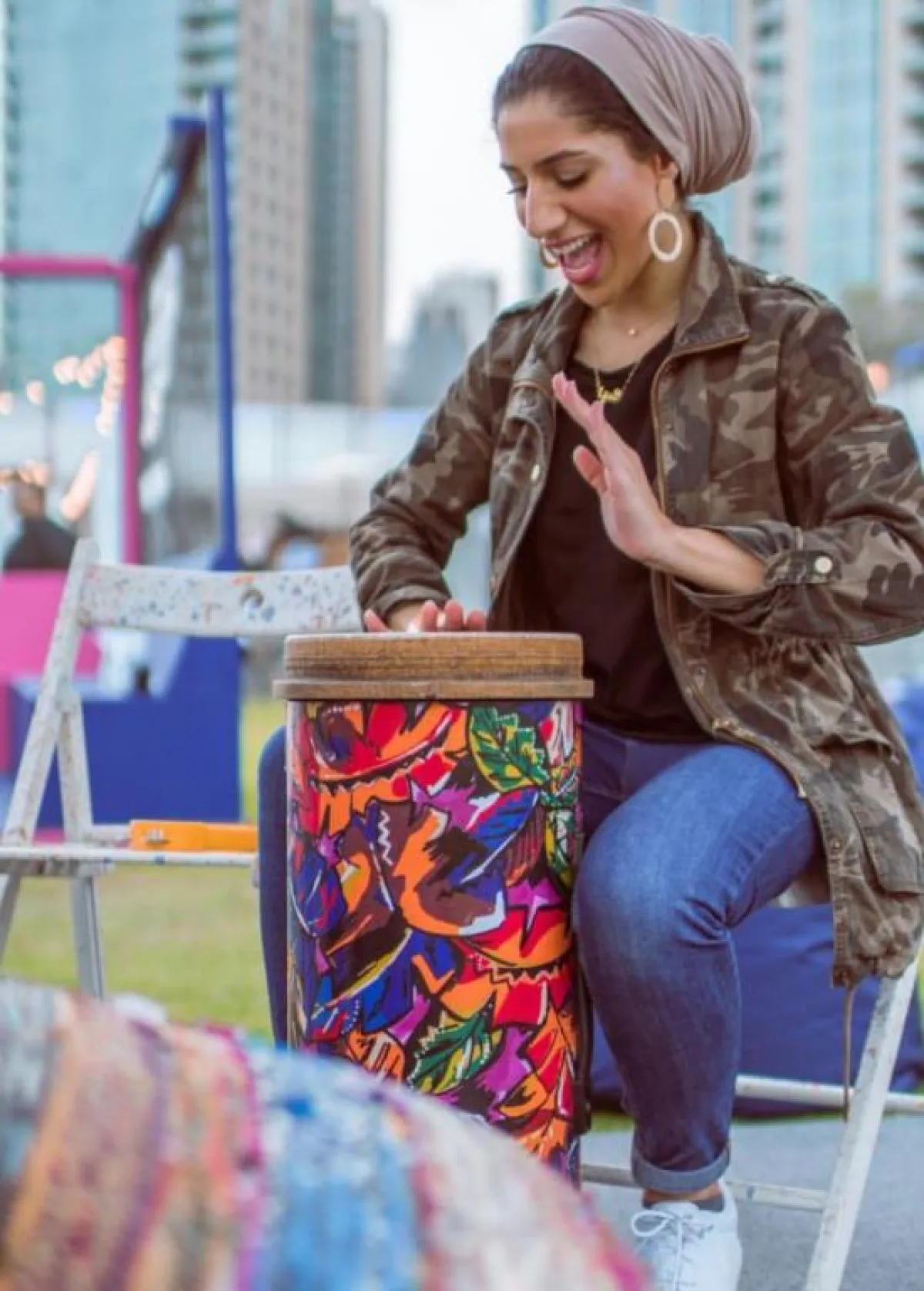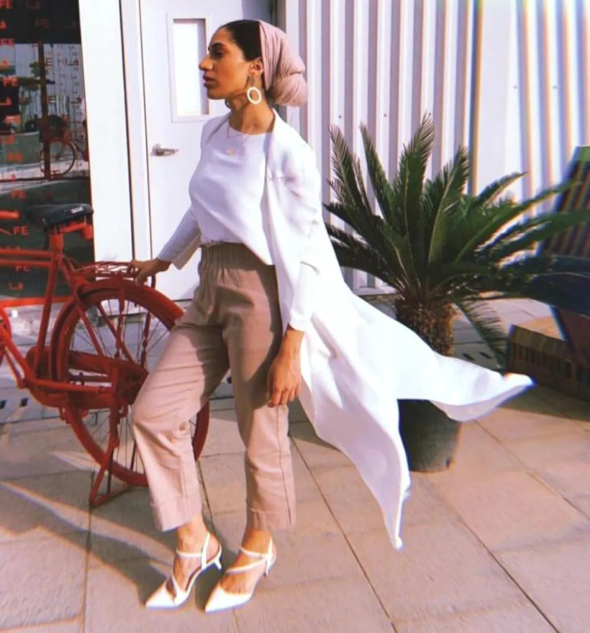 كما تألَّقت ببلوزة ومعطف باللون الأبيض وبنطال وحجاب بدرجة مميزة من اللون البني، وأطلَّت ببنطال جينز وتيشيرت أسود وجاكيت بطبعات جيشية، وتزينت ببنطال جينز وجاكيت رسمي بطبعات جلد الأفعى لمظهر أنثوي، وتجمَّلت بجاكيت بليزر وبنطال باللون الأحمر وتيشيرت أسود جمعتْهما بطريقة رسمية مميزة، ولإطلالة رسمية أخرى نسَّقت قميصًا أسود مع جاكيت وبنطال كاروهات جمعا الألوان الأصفر والأزرق والأحمر بطريقة مبهرة.