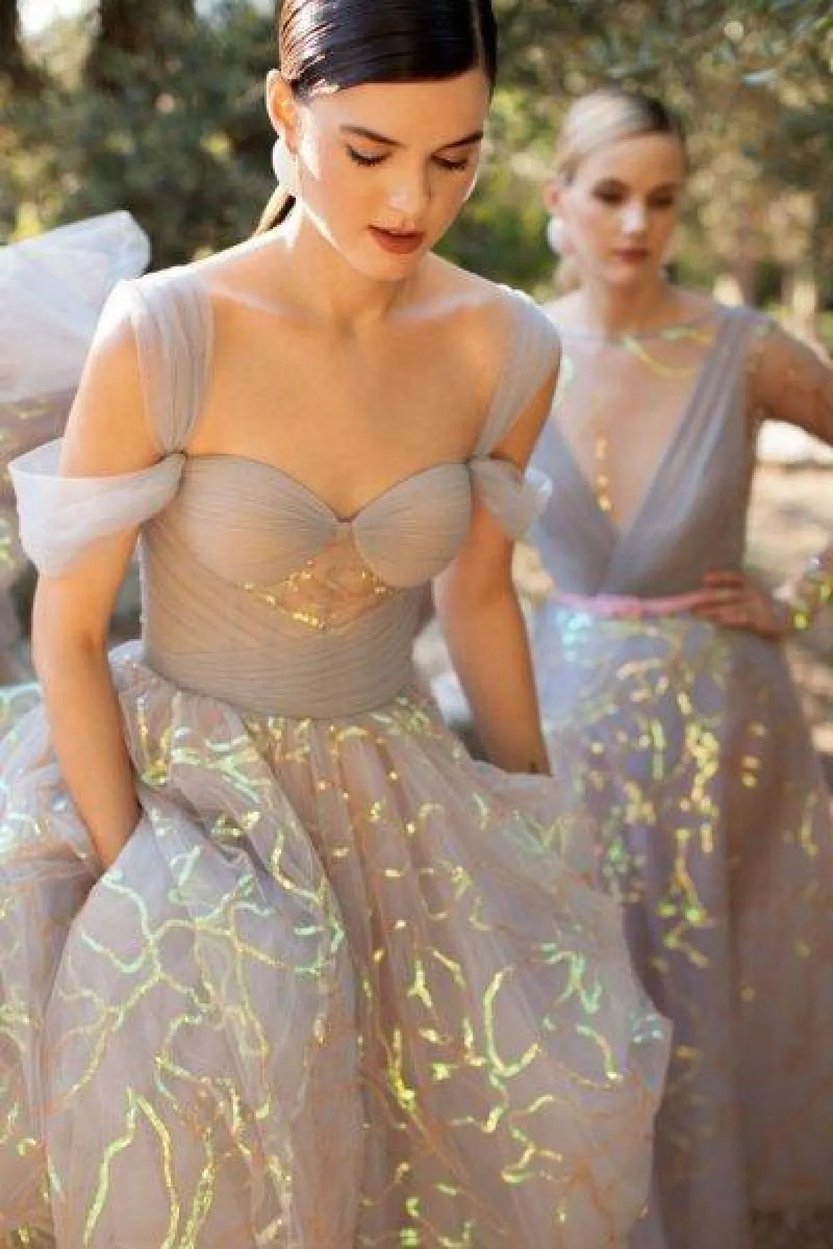 وأبدع المصمم موديلات فساتين يمكن أن تناسب يوم الخطوبة، بفضل التصاميم التي تجمع بين الأنوثة والفخامة.