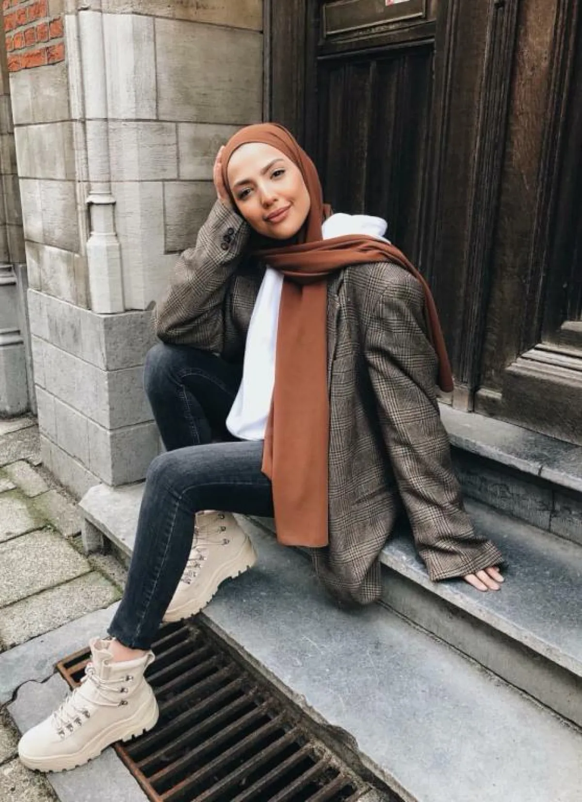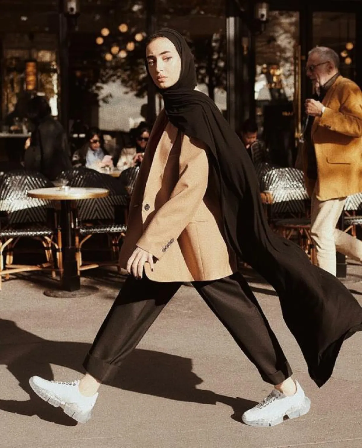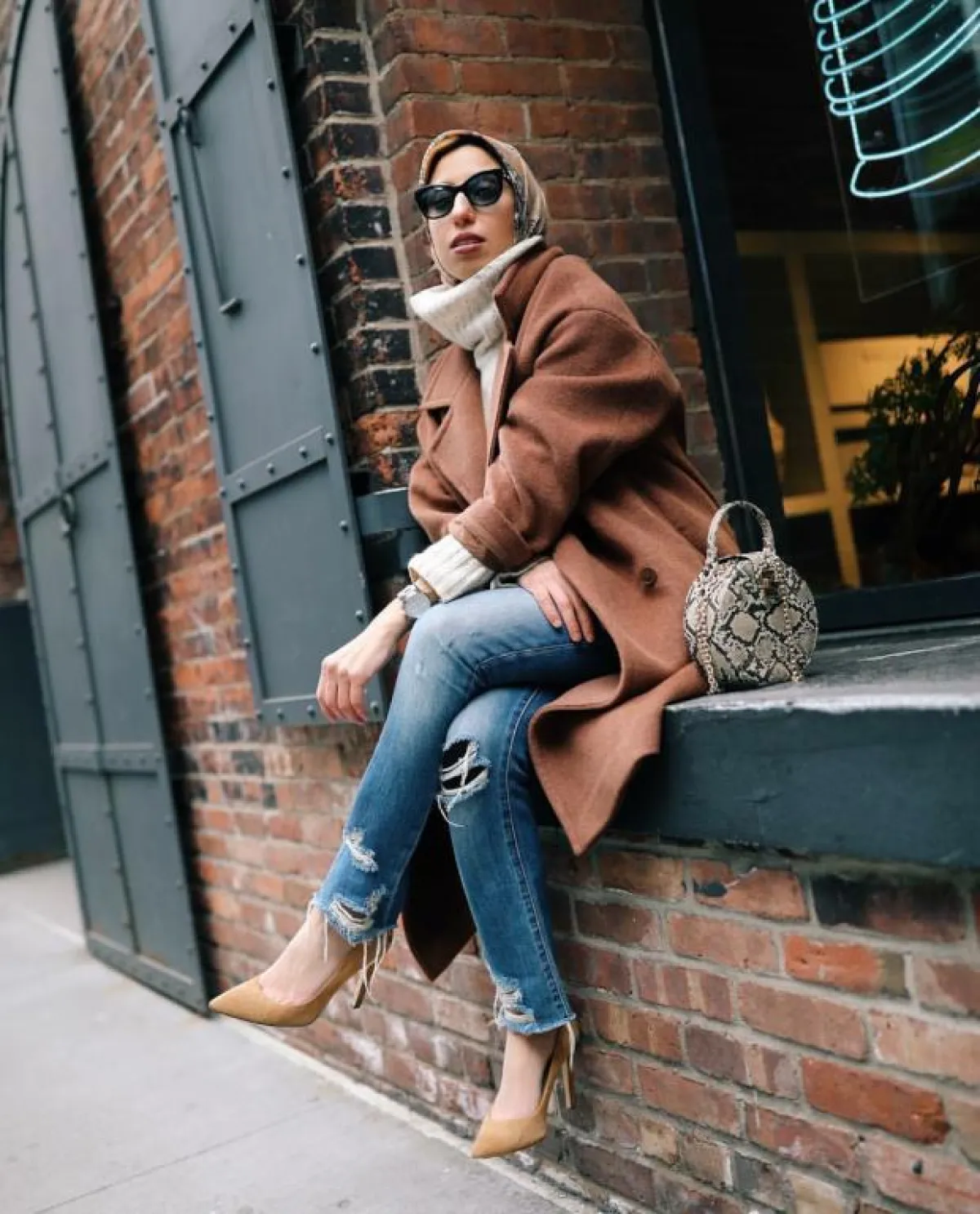 تعتبر من أنسب القطع للمحجبات، لائميها مع إطلالة سوداء مؤلفة من بنطال Skinny وتوب برقبة عالية وبوط باللون البرغندي وأعتمري توربان أسود على طريقة الفاشينيستا زينب حمود.