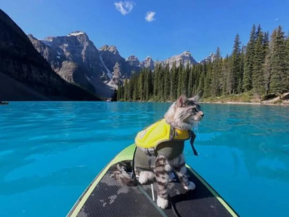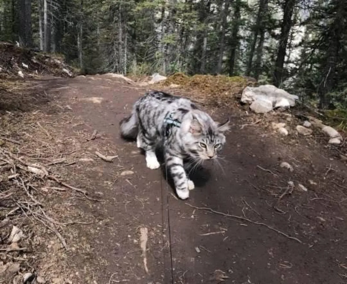 القط بودي صعد جبال روكي الكندية مع صاحبته