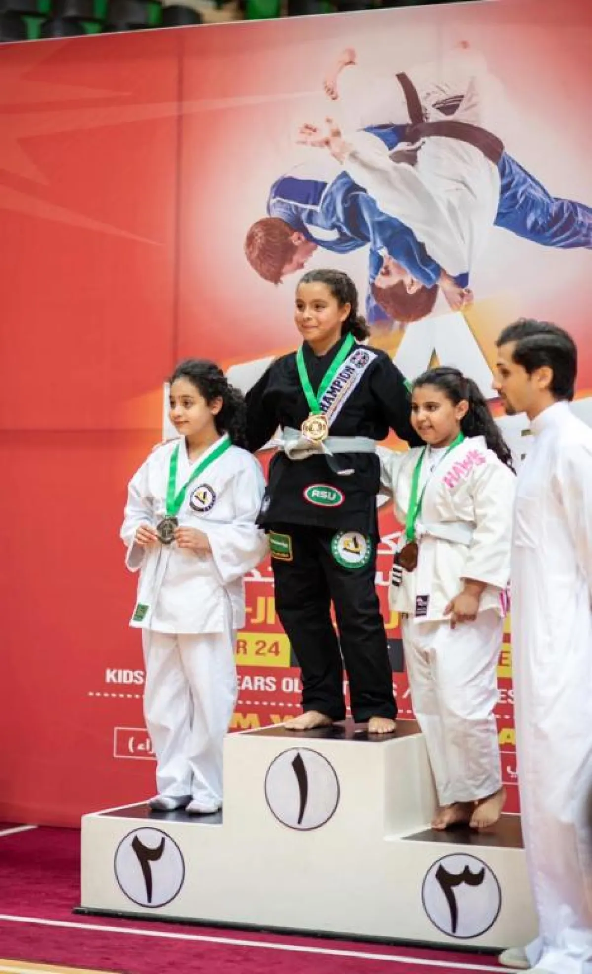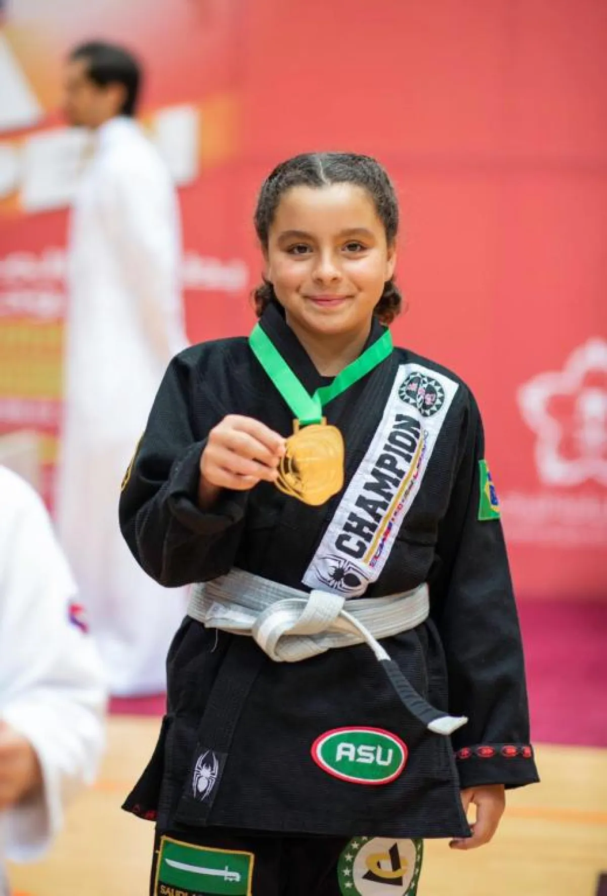 ومن هؤلاء الفتيات المتميزات ماوية الزاهد صاحبة الاثنتي عشر ربيعاً، حيث حصدت الميدالية الذهبية في بطولة المملكة المفتوحة لرياضة الجوجيتسو التي أقيمت مؤخراً في مدينة جدة على أرض ملعب عبدالله الفيصل" الصالة الخضراء"، وقد اتجهت ماوية لرياضة الجوجيتسو منذ ثلاث سنوات بناء على رغبتها وشغفها، ما أدى إلى صقل شخصيتها وتعزيز الثقة بنفسها.