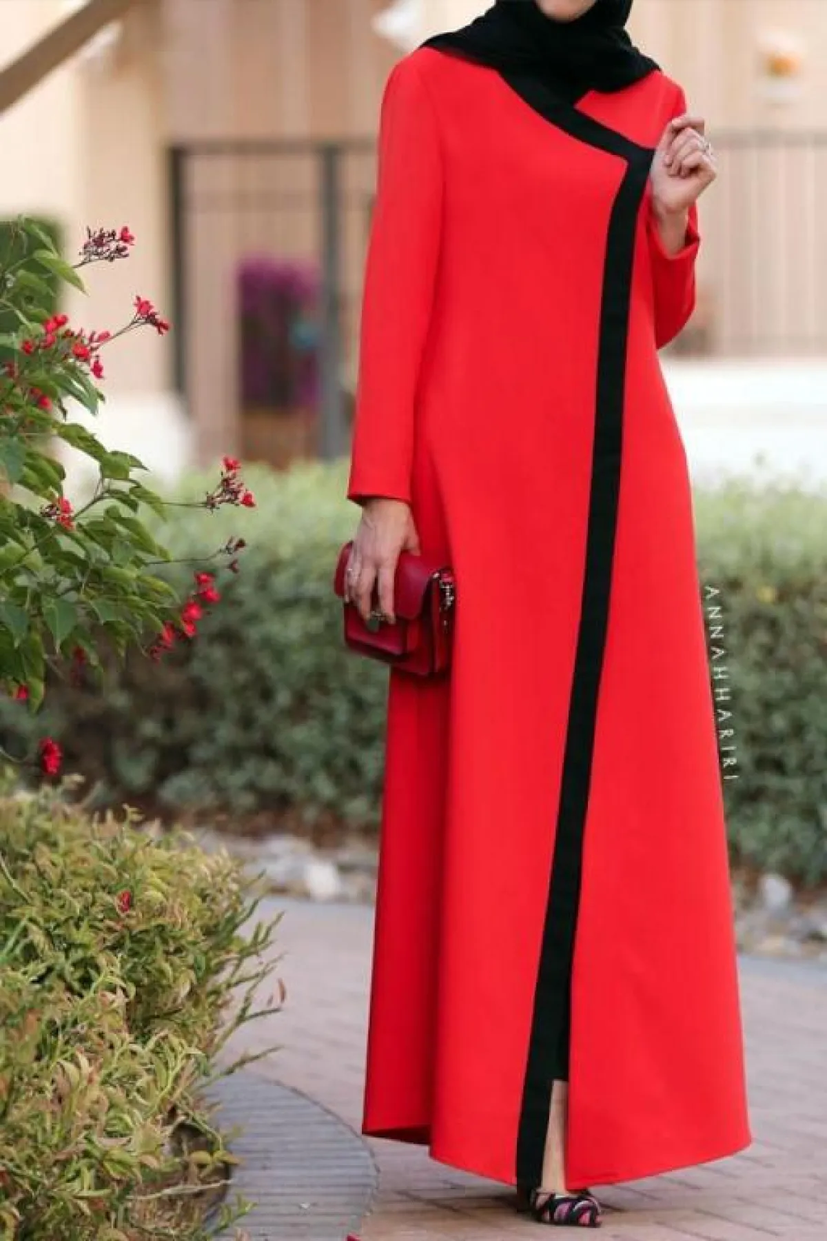 هذا الموديل الأنيق من ANNAH HARIRI كلاسيكي وناعم لاطلالة بسيطة، ولكنها بالوقت نفسه لافتة للأنظار، مع اللمسة للإطار الأسود للعبايه، والطرحة السوداء.