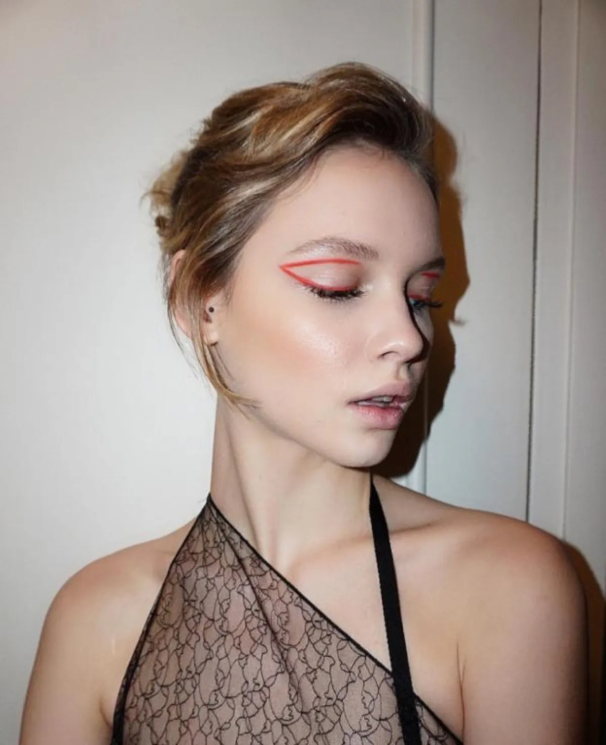 يحتل المكياج الغرافيكي حيزاً كبيراً في موضة المكياج في الوقت الراهن، لذلك ضعيه في قائمة الاختيارات لمناسبات هذا الشتاء بأسلوب ناعم وجذاب بعيداً عن المبالغة. بإمكانك مثلاً اعتماد المكياج الغرافيكي باللون الأحمر، بحيث ترسمين خطاً يمتد من مدمع العين وعلى طول الجفن العلوي وحتى خارج العين، وأتبعيه بخط آخر تحت عظمة الحاجب. واحرصي على إضاءة الوجه بالقليل من البلاش، واستخدام أحمر الشفاه الطبيعي.