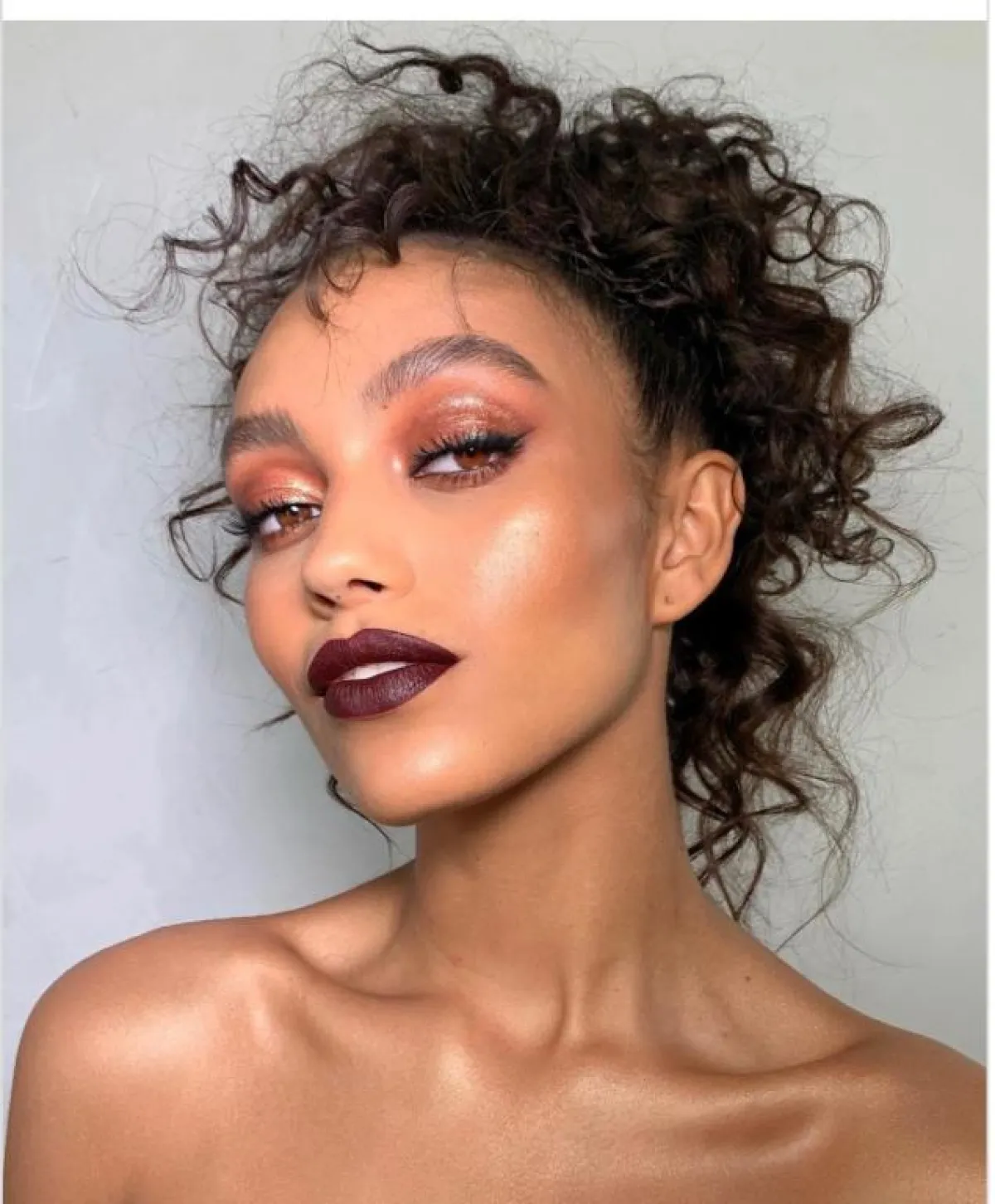 بإمكانك هذا الشتاء الخروج عن أساليب المكياج التقليدية، واعتماد المكياج الموحد بالألوان الداكنة المميزة، في مقدمها البرقوقي، بحيث تعتمديه للشفاه والعينين أيضاً. استخدمي أحمر الشفاه باللون البرقوقي الداكن، وطبقي ظلال العيون باللون نفسه إنما مع لمسة لامعة جذابة، وذلك فوق الجفن العلوي. وارسمي بعدها، خط أيلاينر أسود رفيعاً على طول خط الرمش العلوي.