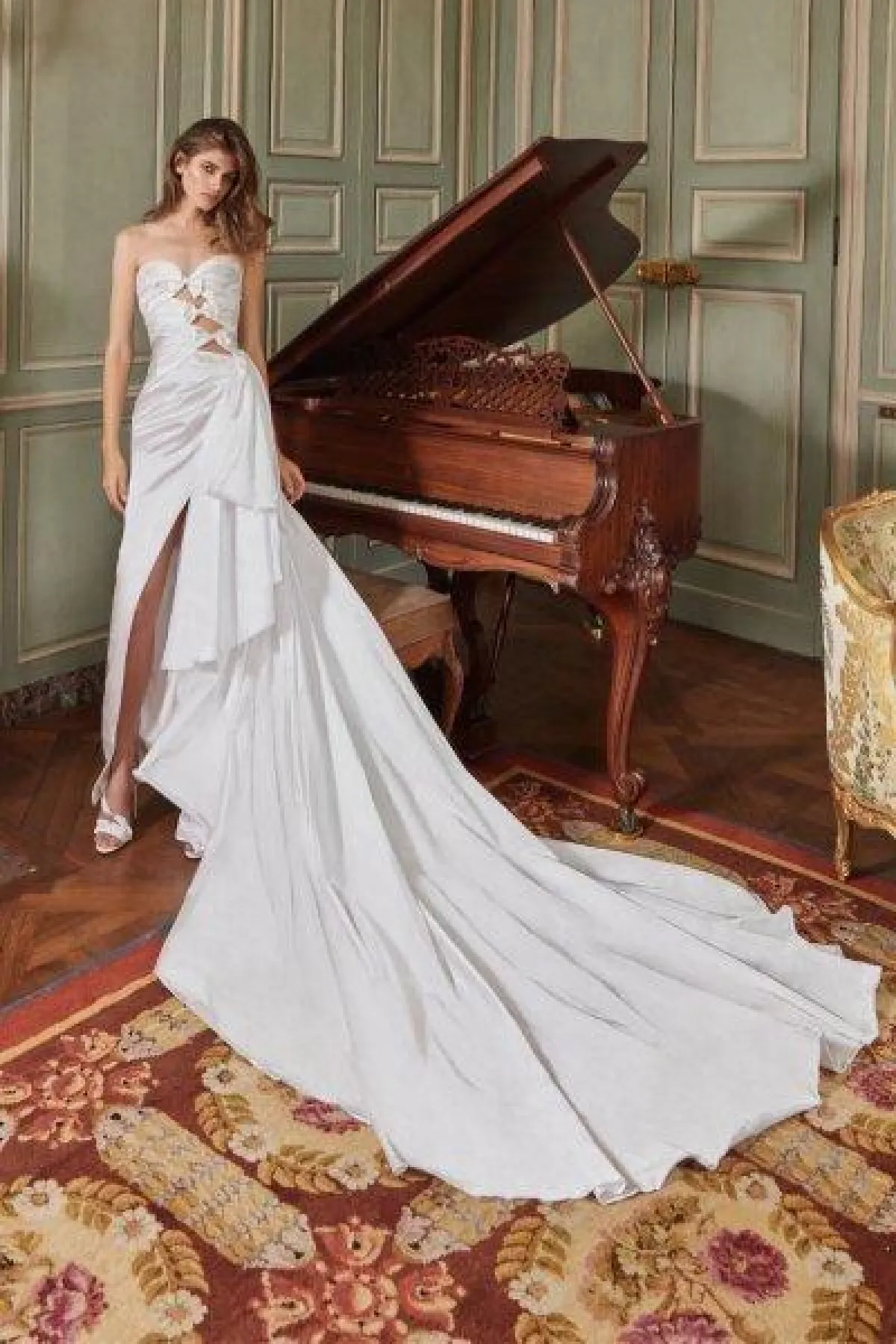 تصاميم رومانسية ساحرة من ماركة Galia Lahav ومزودة بالذيل الطويل سواء في جانب الفستان أو من الخلف.