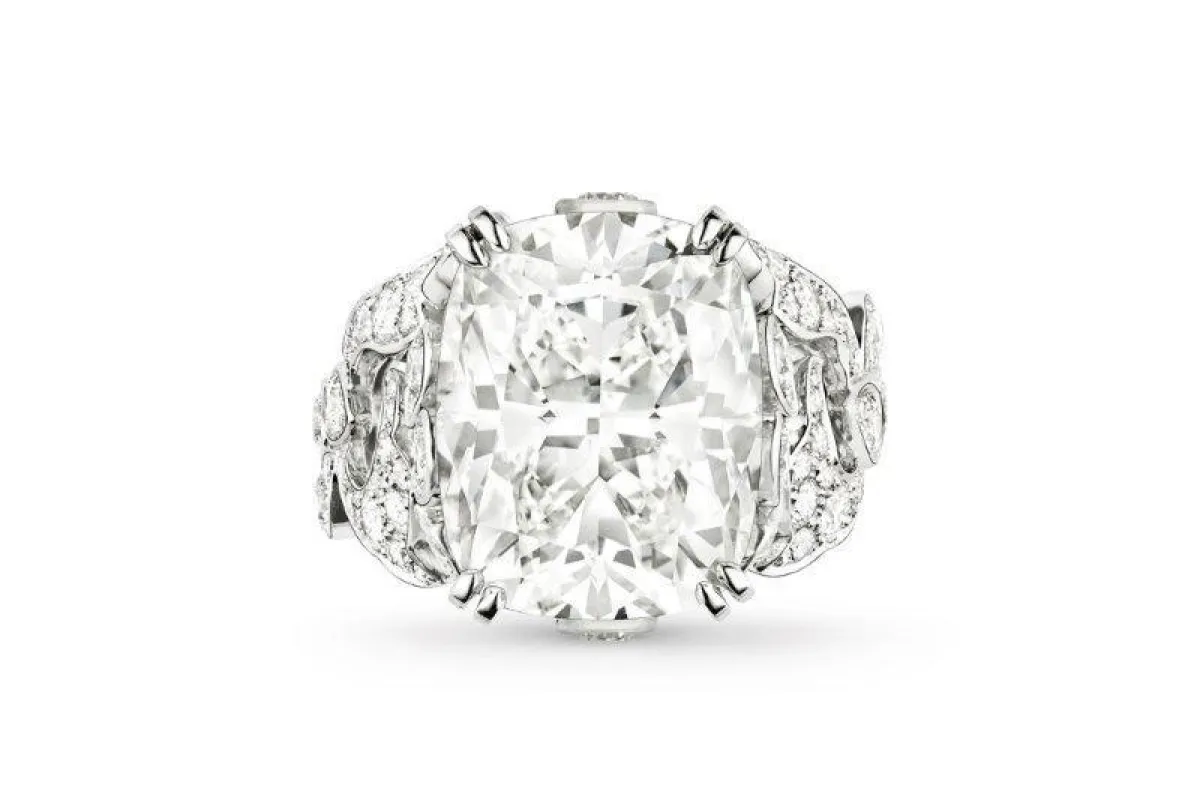 أعجبنا خاتم الخطوبة الكبير من شوميه، والمرصع بفص ألماس كبير في منتصفه، ويحيطه مجموعة كبيرة من فصوص الألماس الصغيرة.