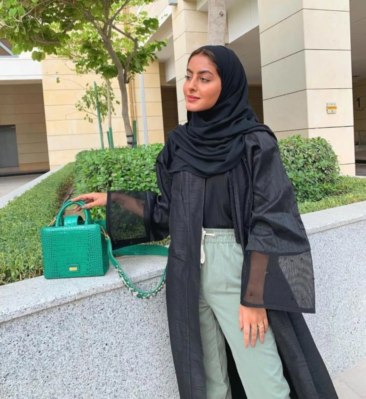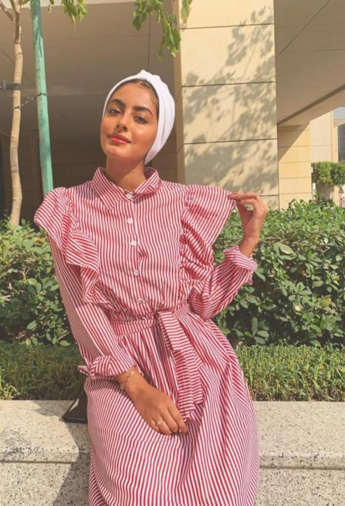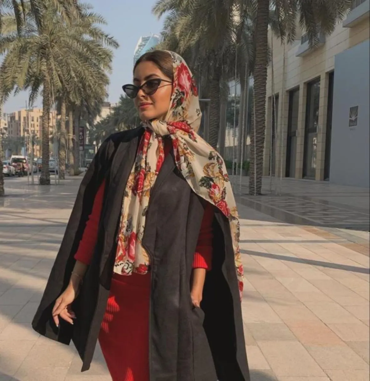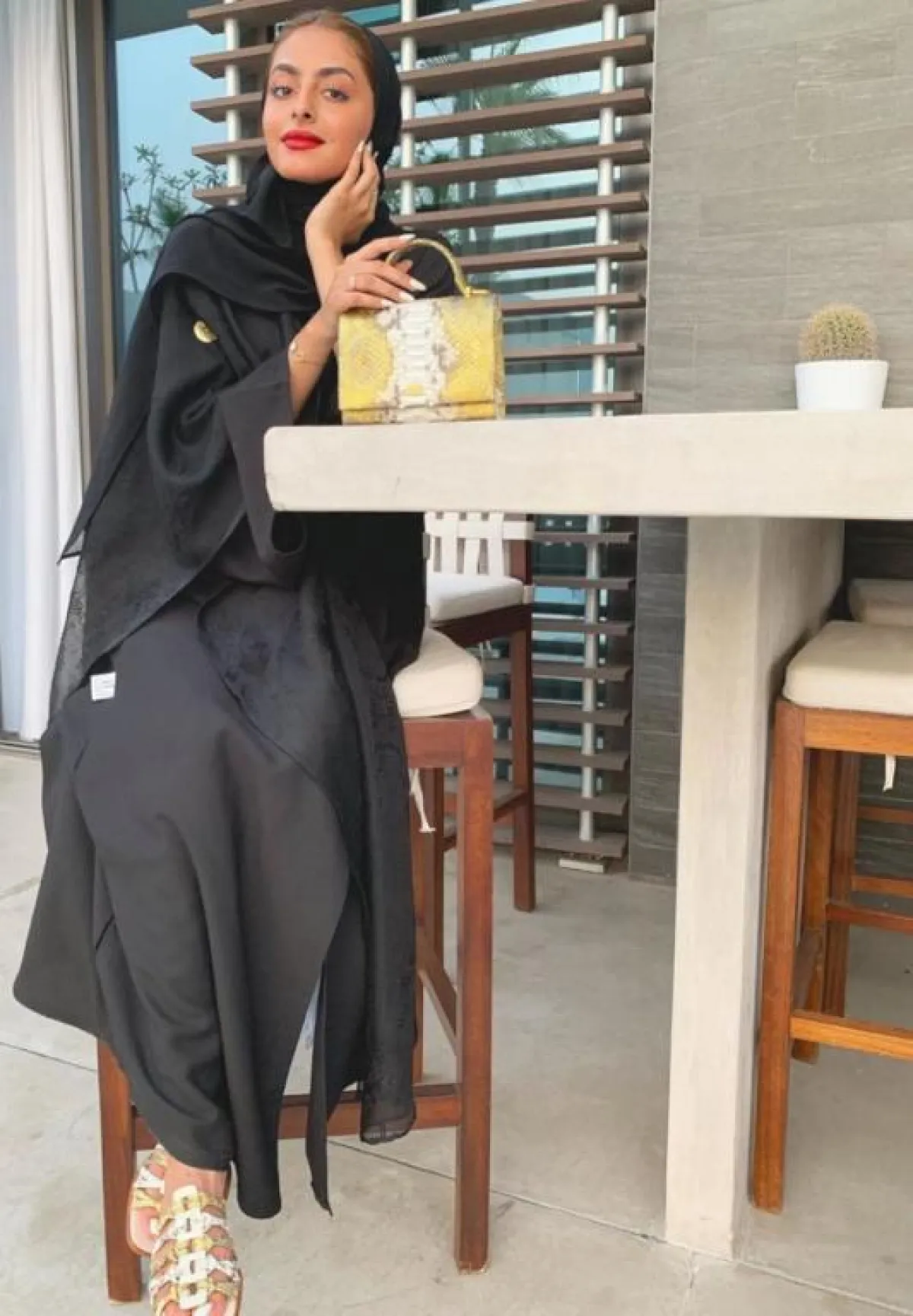 ولمظهر بسيط ظهرت بمعطف زهري يكسوه الفرو وبنطال أخضر، ولمظهر آخر خريفي تزيَّنت بفستان برتقالي ومعطف أسود مع حجاب بيج مزين بزهور، وأطلَّت بمعطف زيتي وبنطال جينز مع حجاب أسود، وتميزت بحجاب أبيض وفستان أحمر طويل مزين بخطوط بيضاء وحزام للخصر وكشكشة في الأطراف العلوية لمظهر شبابي مميز، وتأنَّقت بإطلالة تجمع الفخامة والأنوثة بعباءتها وحجابها الأسود، وأكملت إطلالتها الخليجية بحقيبة ذهبية مزينة بالأبيض وحذاء باللون الذهبي.