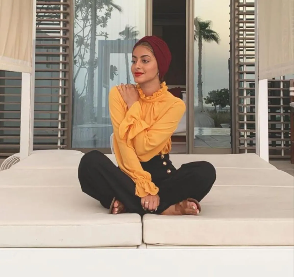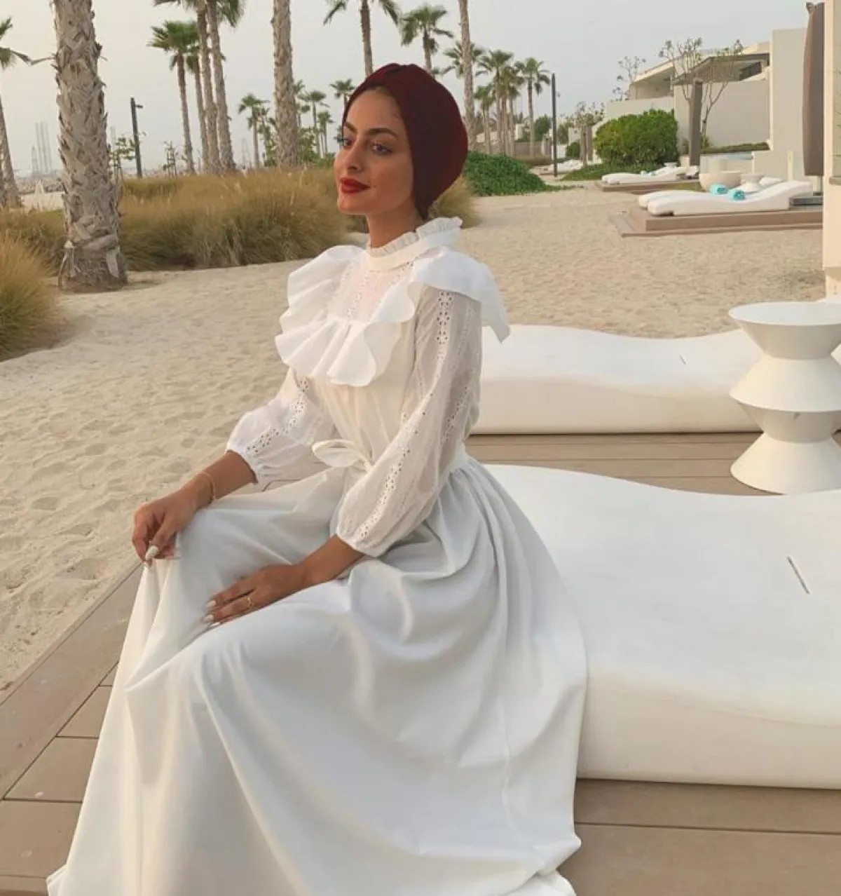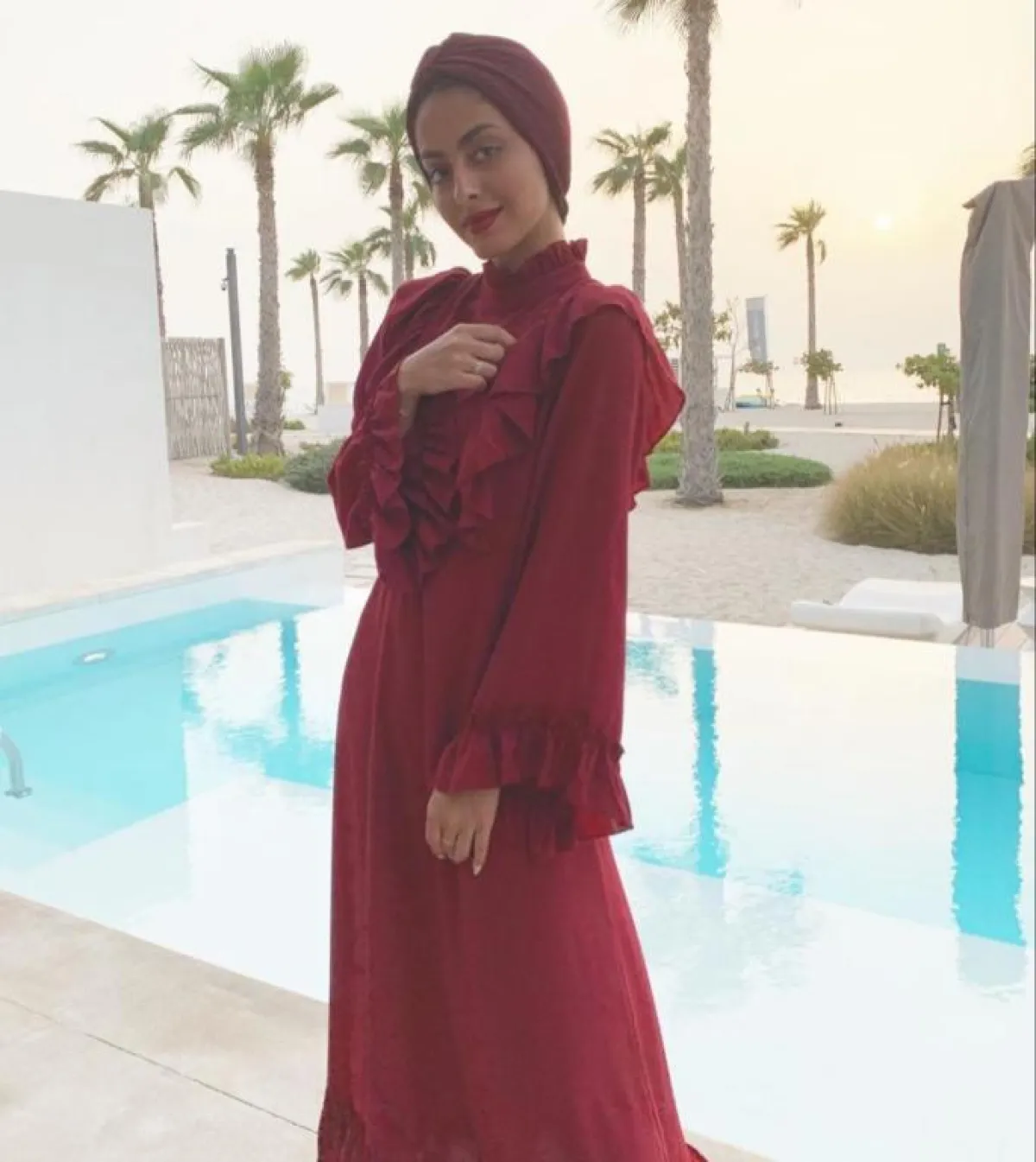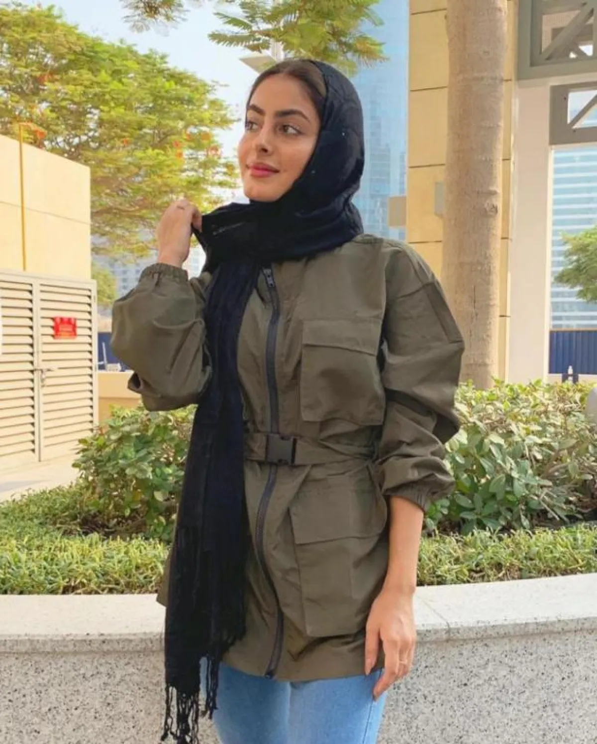 ولمظهر بسيط ظهرت بمعطف زهري يكسوه الفرو وبنطال أخضر، ولمظهر آخر خريفي تزيَّنت بفستان برتقالي ومعطف أسود مع حجاب بيج مزين بزهور، وأطلَّت بمعطف زيتي وبنطال جينز مع حجاب أسود، وتميزت بحجاب أبيض وفستان أحمر طويل مزين بخطوط بيضاء وحزام للخصر وكشكشة في الأطراف العلوية لمظهر شبابي مميز، وتأنَّقت بإطلالة تجمع الفخامة والأنوثة بعباءتها وحجابها الأسود، وأكملت إطلالتها الخليجية بحقيبة ذهبية مزينة بالأبيض وحذاء باللون الذهبي.