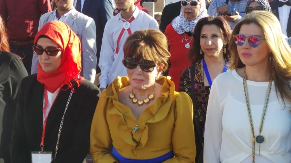 ودعا الفنان محمود قابيل، الفنانة لبنى عبد العزيز للصعود إلى منصة المسرح لتسلم درع التكريم والتقاط الصور التذكارية مع باقي المكرمين، وحرص محافظ أسوان أحمد إبراهيم على مساعدة الفنانة القديرة على الصعود للمسرح.