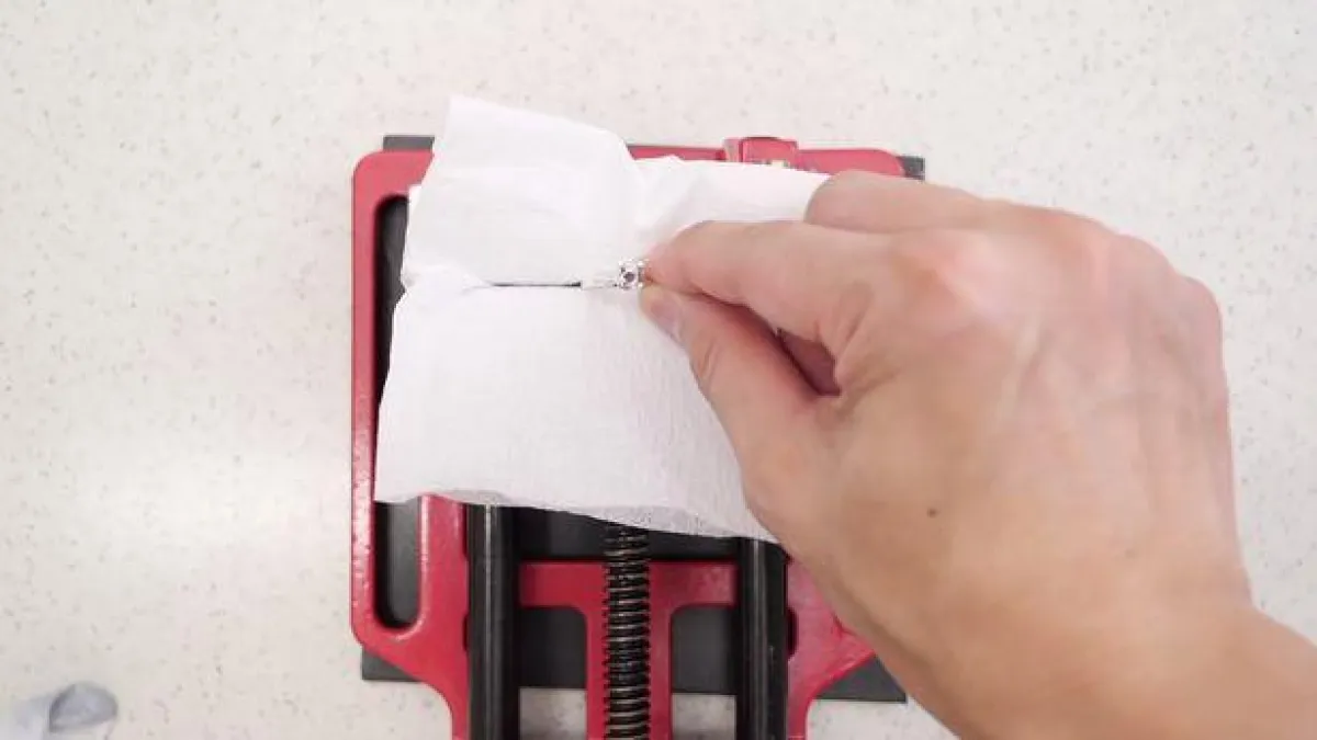 في الخطوة التالية أخذ الرجل الخليط ووضعه في قالب على شكل ألماسة، ثم وضع العجينة في الفرن لمدة 90 دقيقة، حتى خرج من الفرن ما يُشبه الطين ألغامق، ثم قام بتثبيتها في خاتم فضي قام بصنعه أيضاً بنفسه.