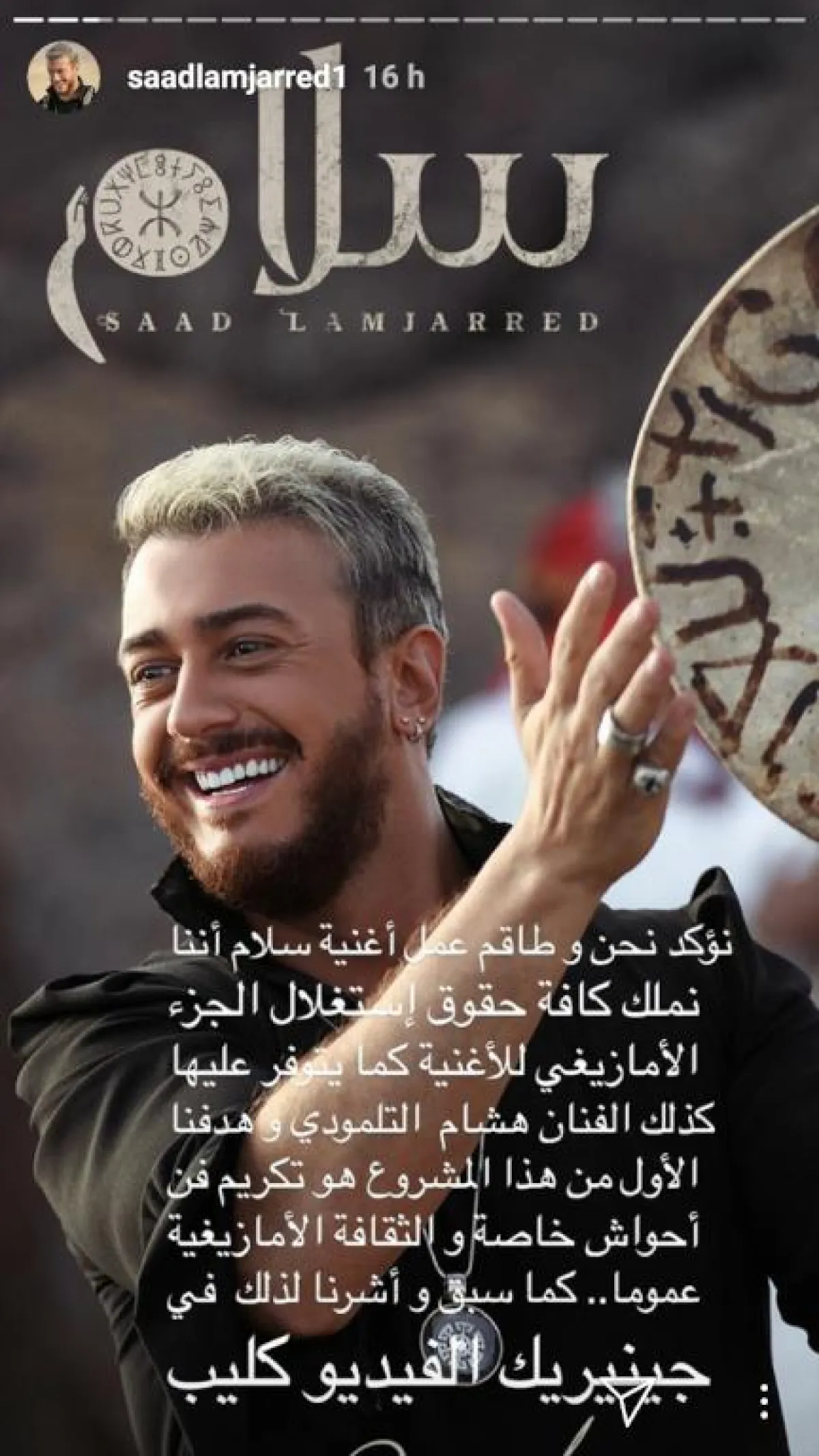 ونشر سعد المجرد توضيحاً حول هذا الموضوع عبر "إنستا ستوري"، أكد فيه" تؤكد نحن وطاقم أغنية سلام أننا نملك كافة حقوق استغلال الجزء الأمازيغي للأغنية كما يتوفر عليها كذلك الفنان هشام التلمودي وهدفنا الأول من هذا المشروع هو تكريم فن أحواش والثقافة الأمازيغية عموما كما سبق وأشرنا لذلك في جنيريك الفيديو كليب.