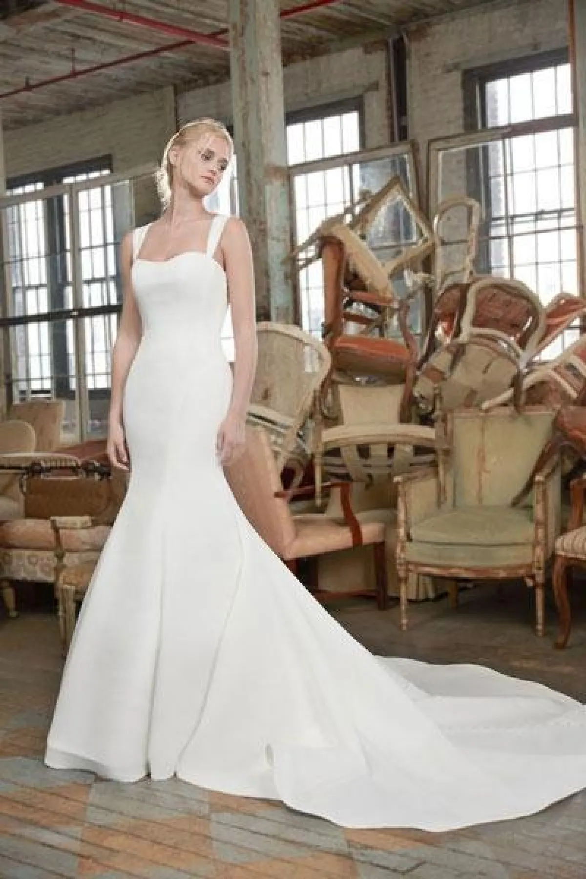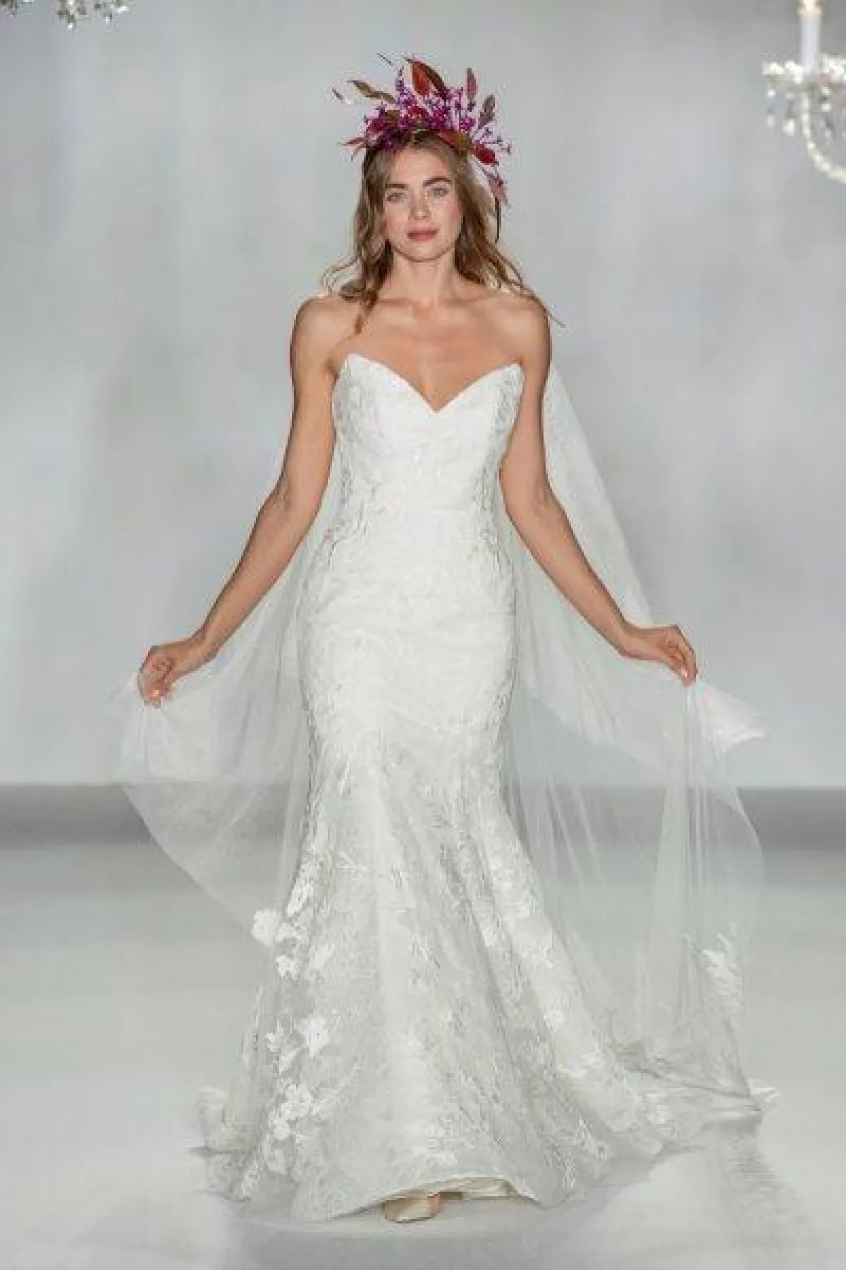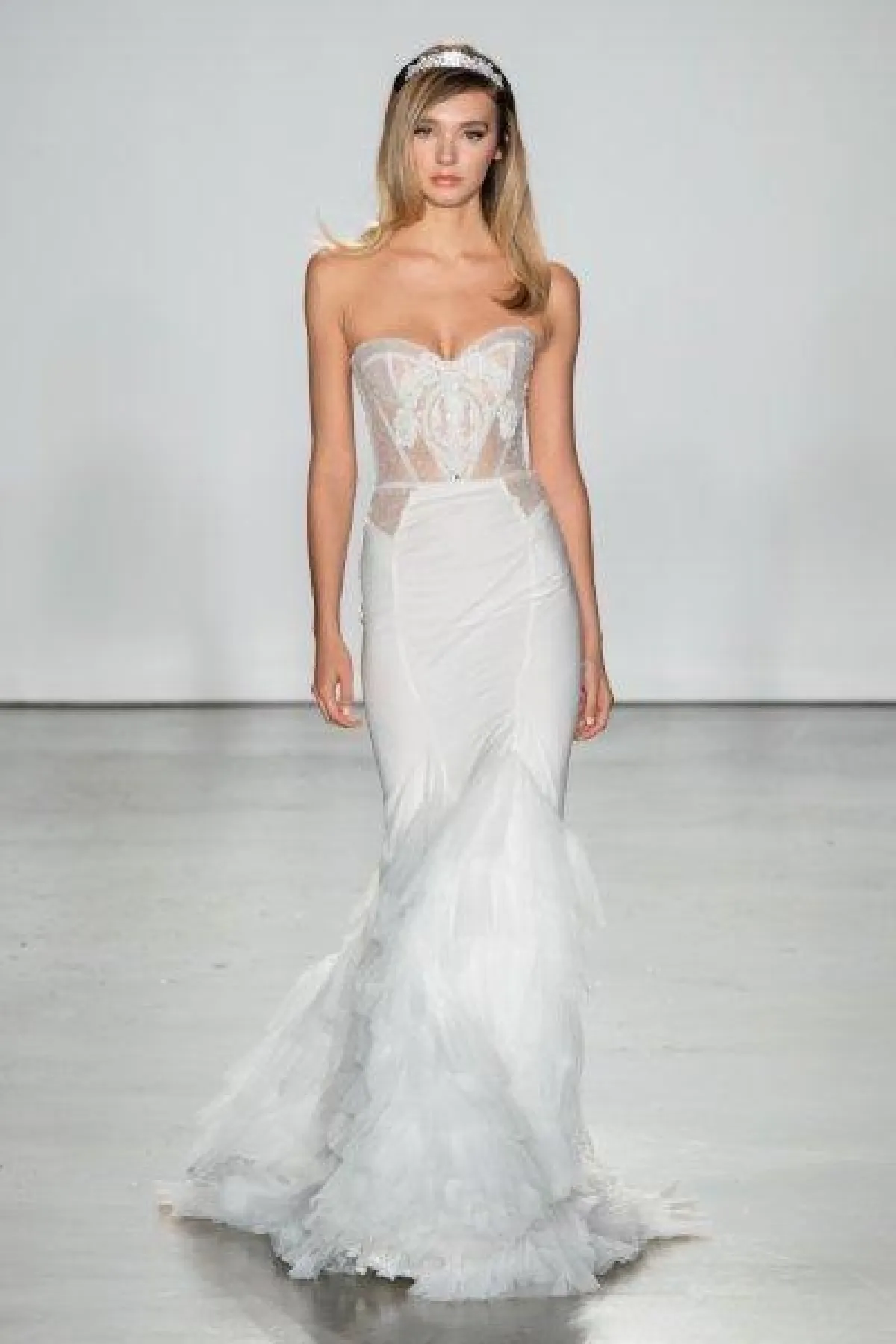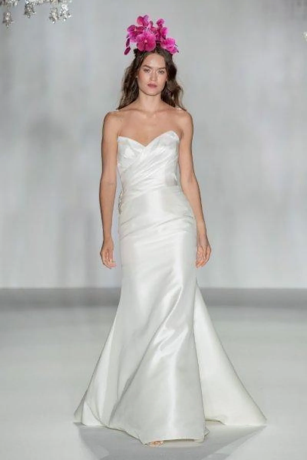 كما قدمت الماركة فساتين زفاف ضيقة بحمّالات رفيعة، وهو التصميم الأبرز خلال أسبوع الأعراس بنيويورك.